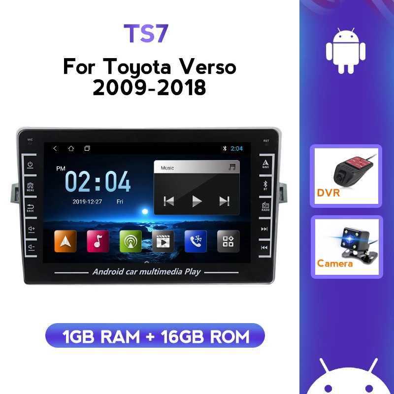 Автомобильное радио 1280*720 IPS 2.5D Android, головное устройство для Toyota Verso EZ 2009, 2010, 2011, 2018, мультимедийный плеер, DVD, FM, AM, GPS-навигация