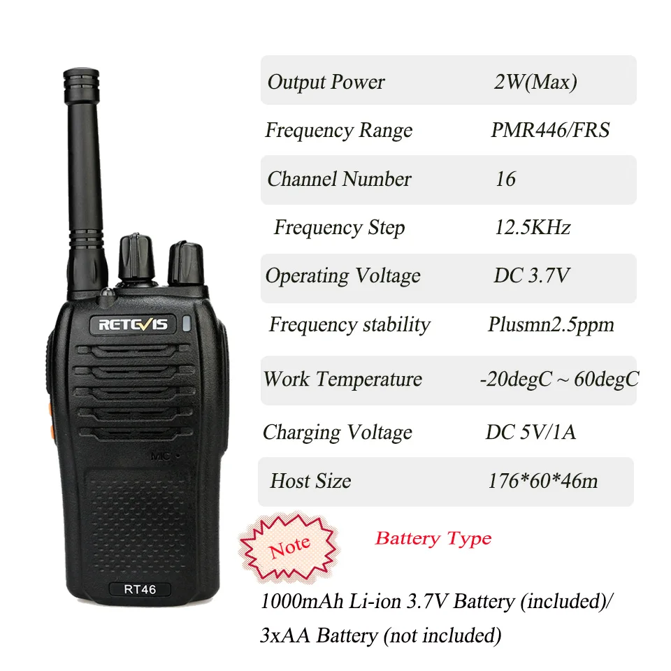 Retevis RT46 walkie talkies это такое профессиональное радио, которое вы можете быть уверены в использовании и не нужно беспокоиться о проблемы с лицензией.