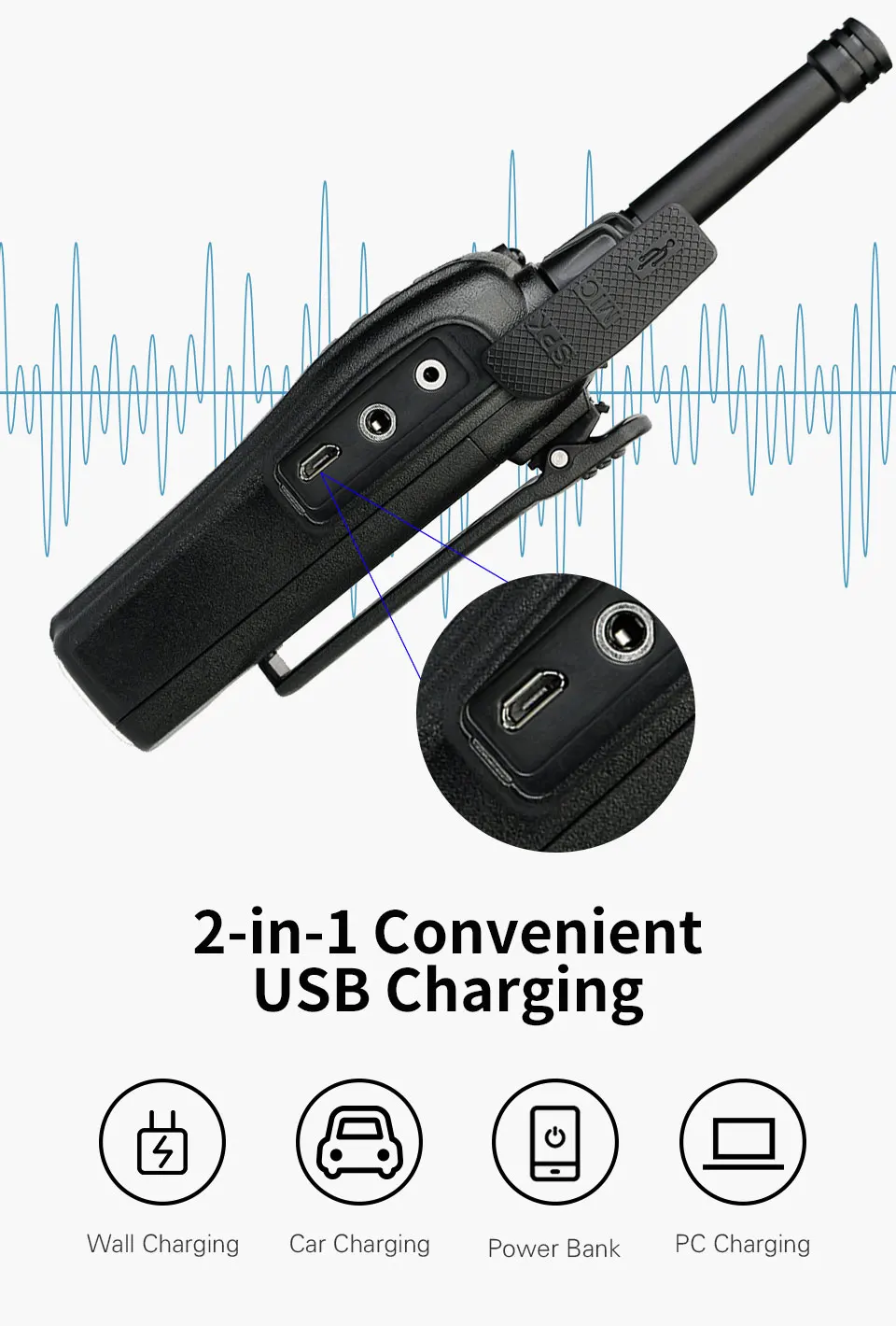 Зарядное устройство USB может поддерживать больше способов зарядки, и вы можете заряжать радио в любое время с любым способом