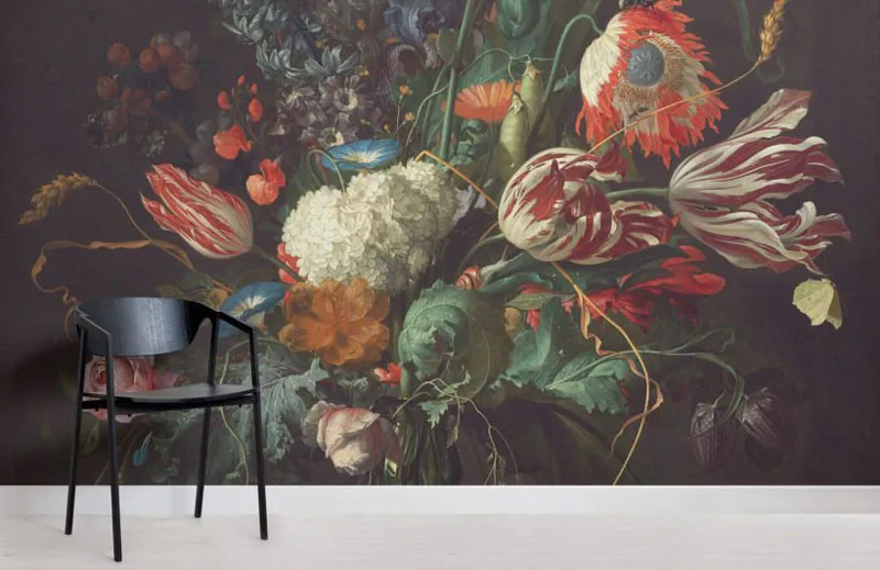 Настенная роспись Bacaz с темными цветами Ваза цветов Heem обои для столовой фон 3D настенная бумага фрески Декор художественная стена
