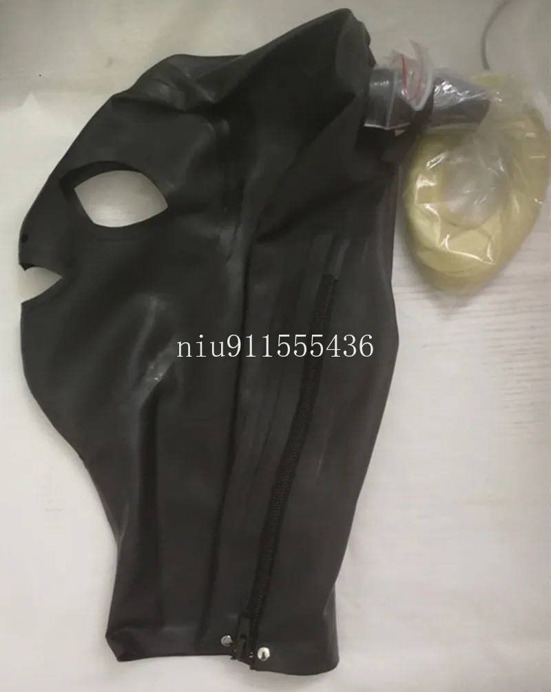 Латексный капюшон ручной работы, прикрепленный мундштук и трубка дл...