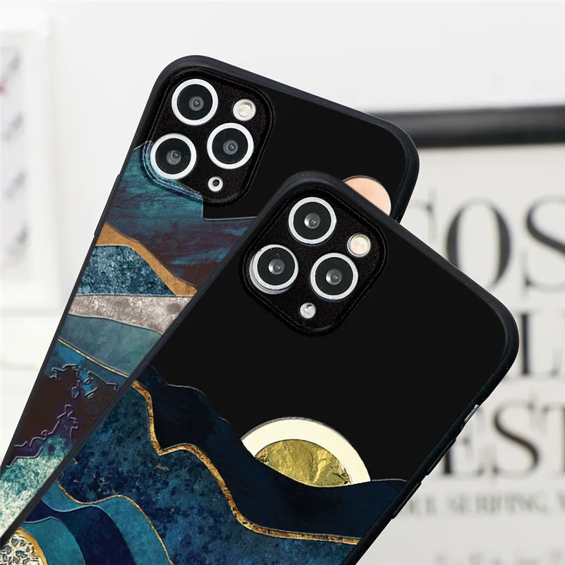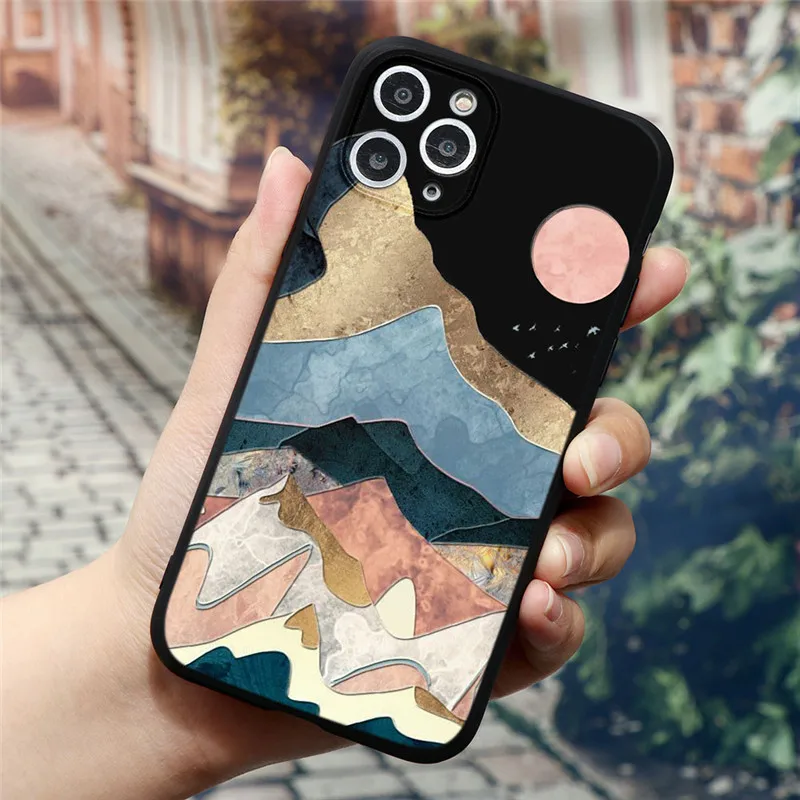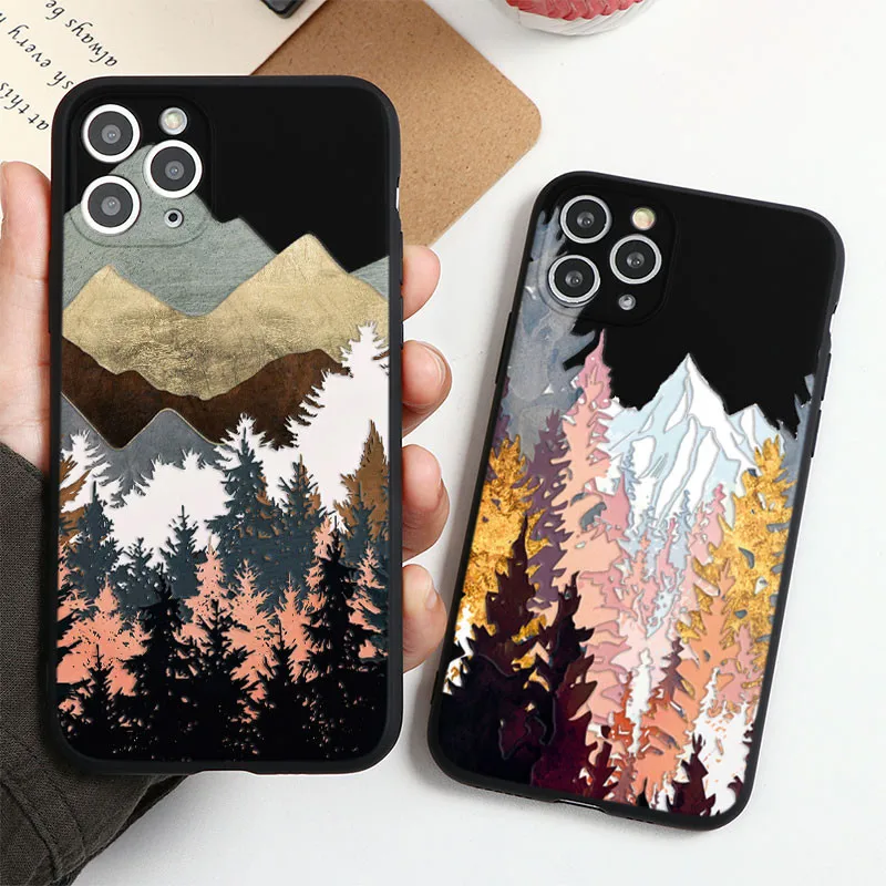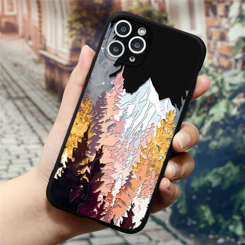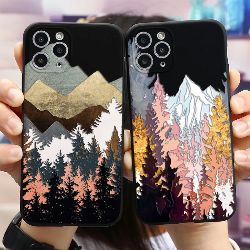 Мягкий чехол для телефона с 3D тиснением гор и деревом для iPhone 12 13 Mini 6 7 6S 8 Plus 5 SE 2020 X XR XS 11 Pro Max, рельефная задняя крышка из ТПУ