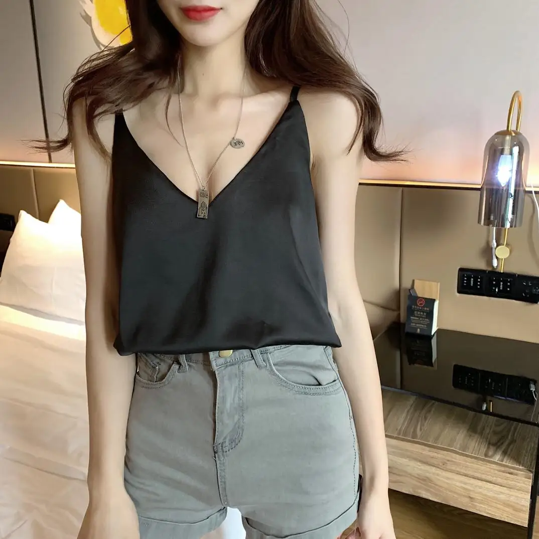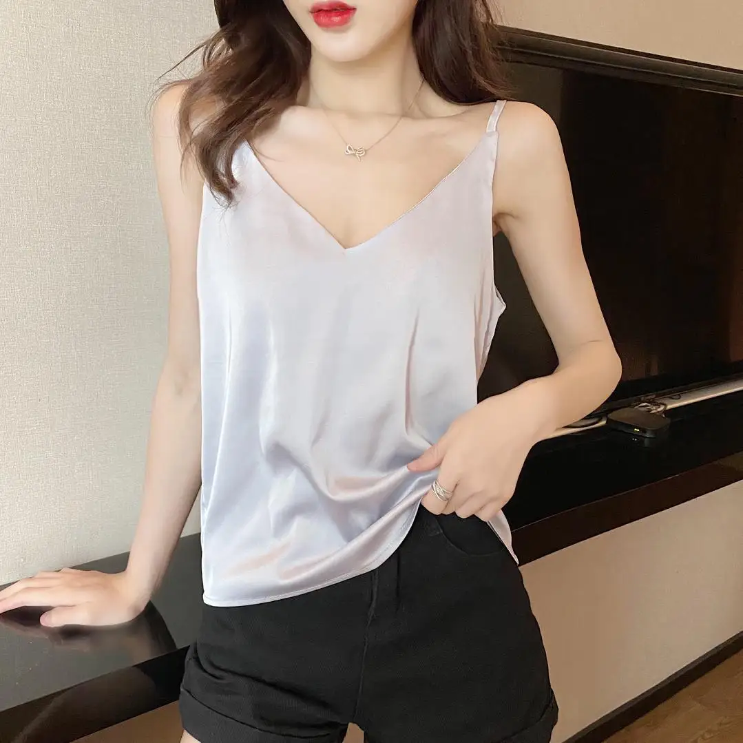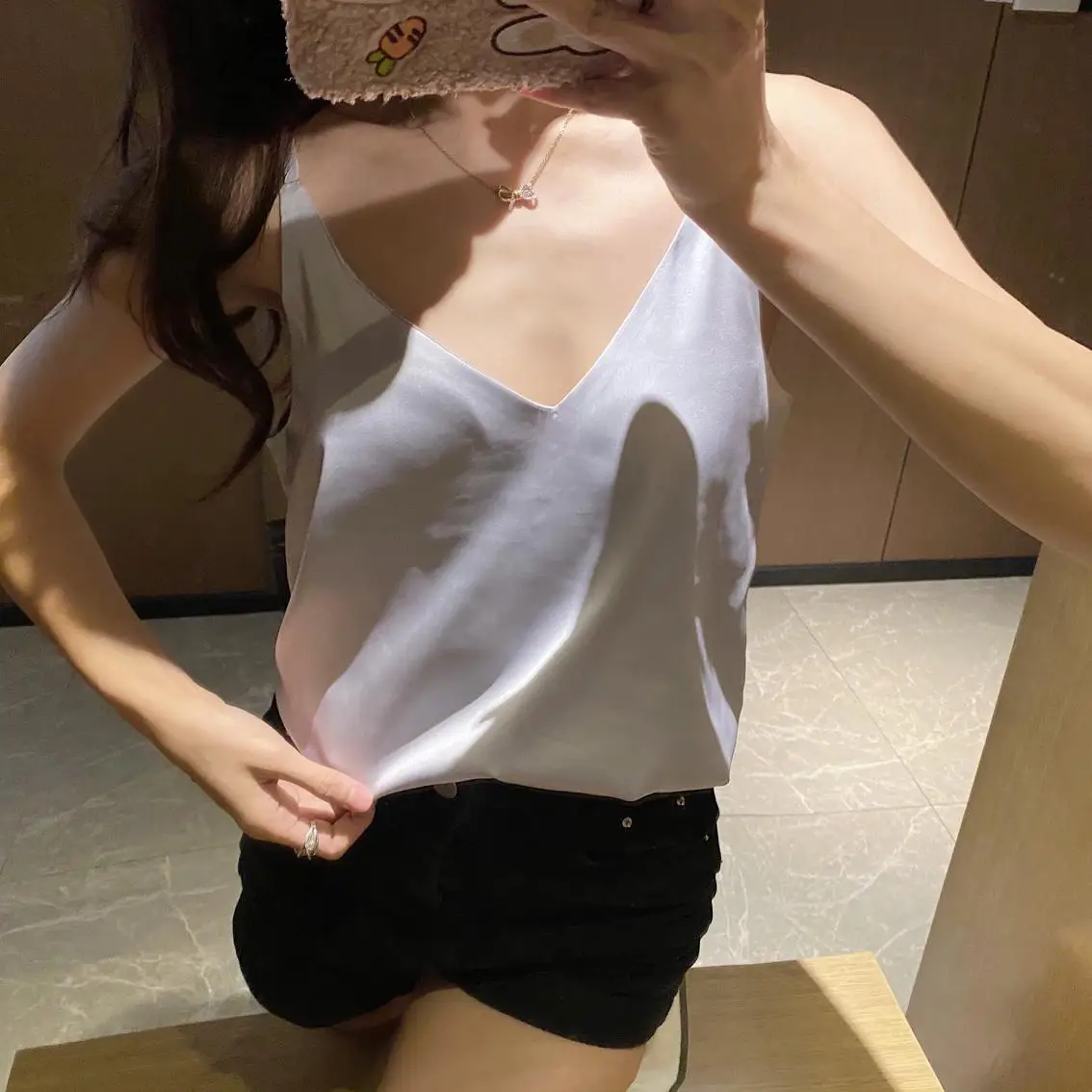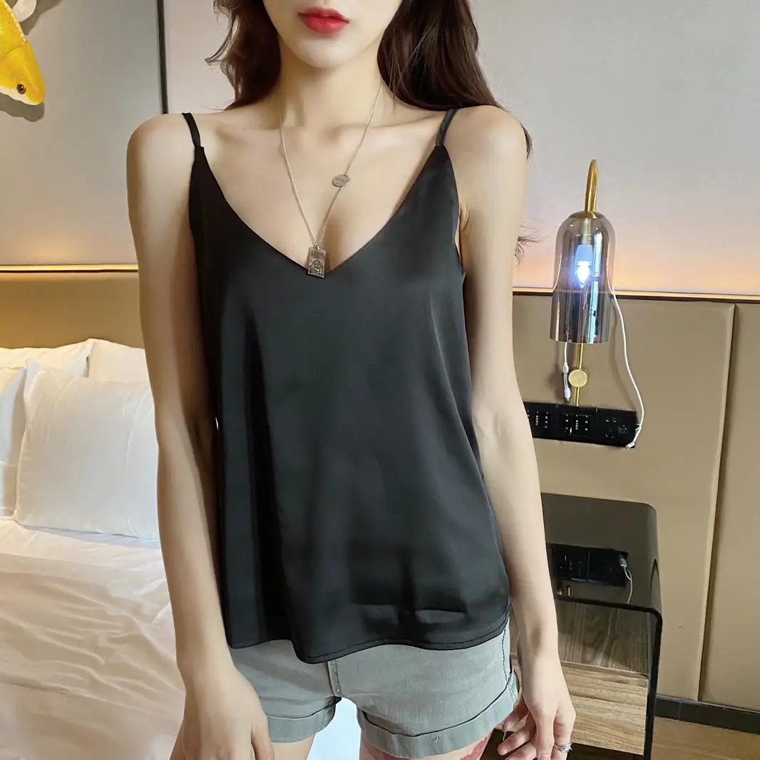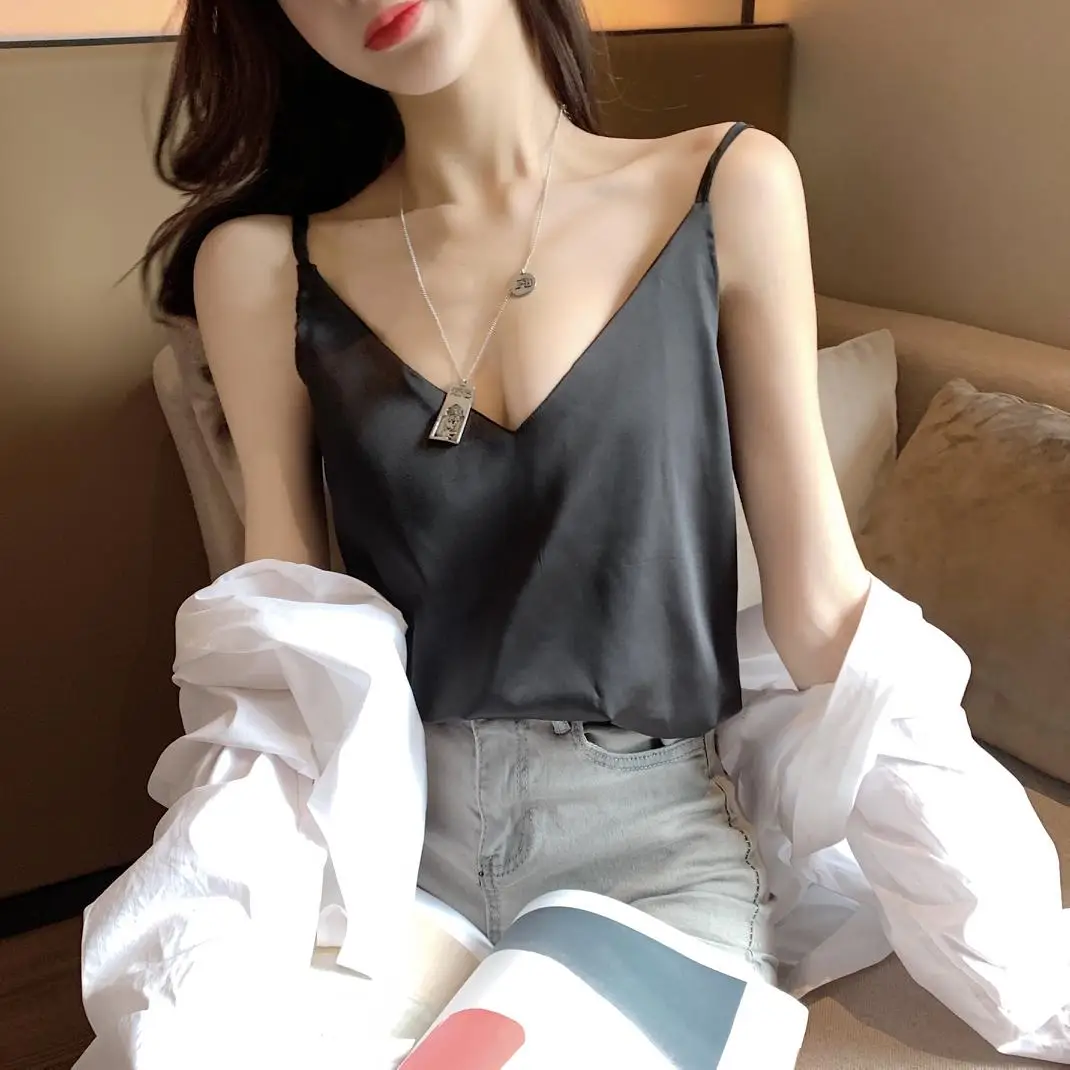 2021 топ на бретелях-спагетти, блузка, Женский Топ без рукавов, атласный Шелковый топ с лямкой на шее, женские сексуальные летние рубашки, топ, блуза