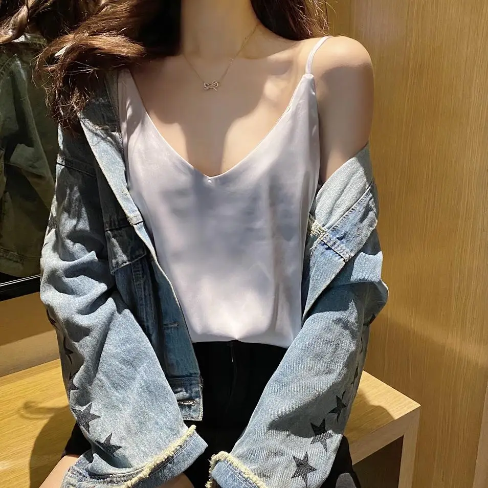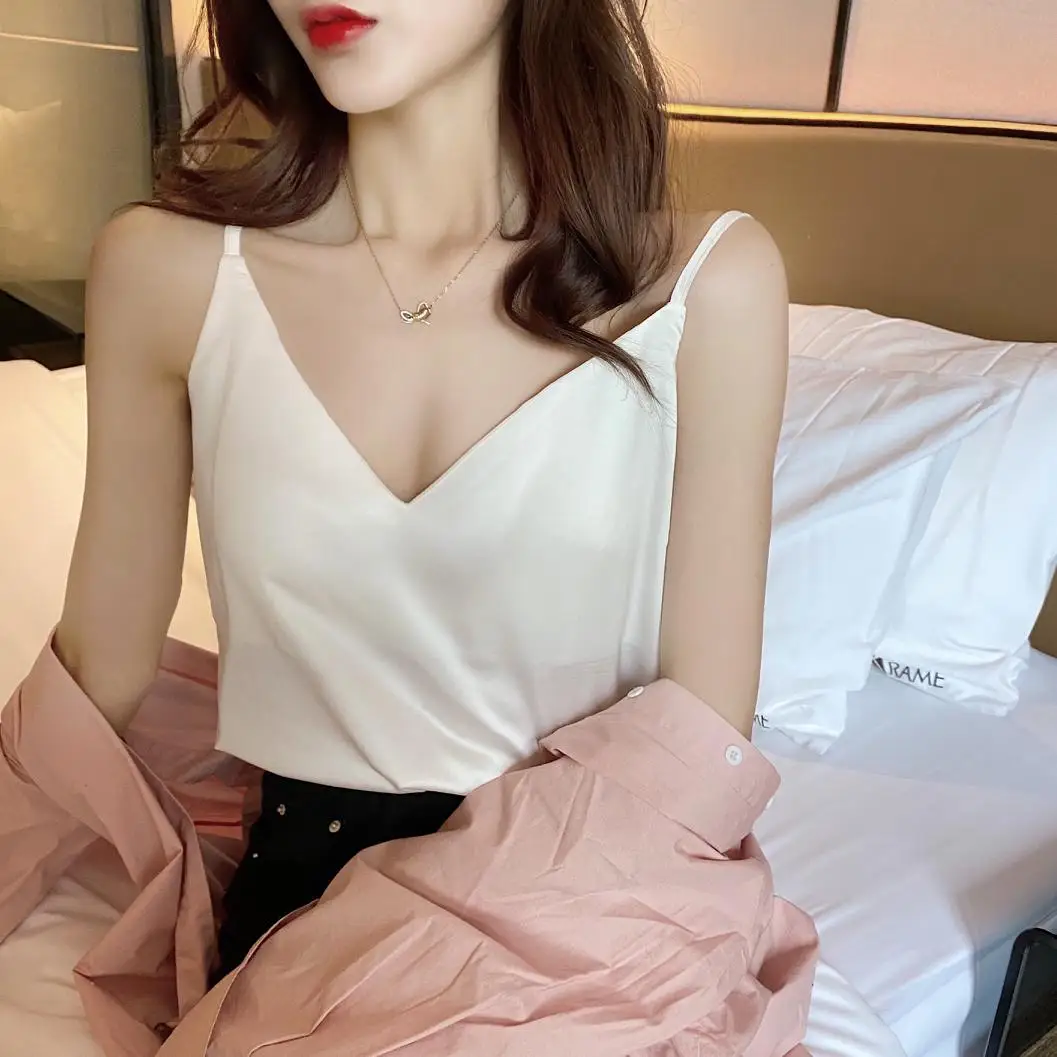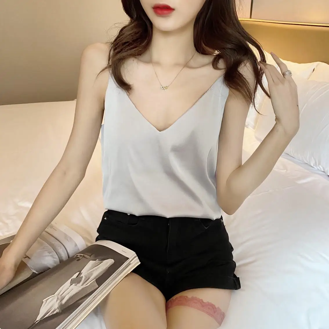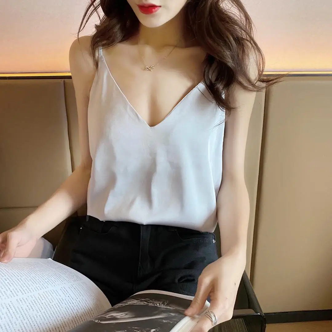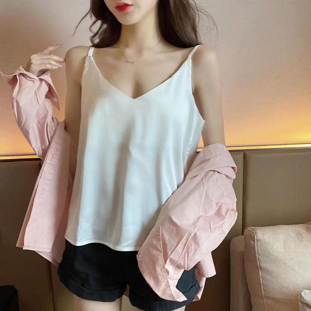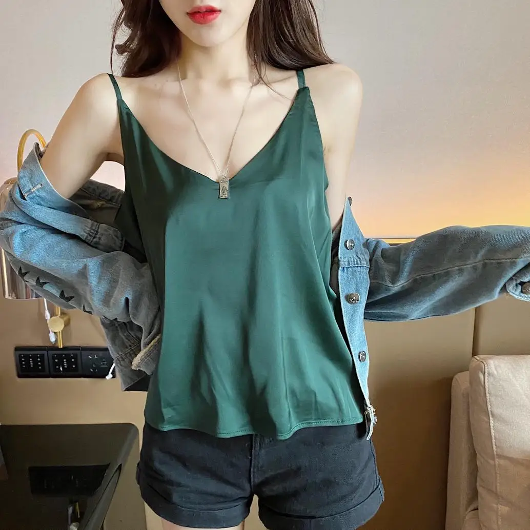 2021 топ на бретелях-спагетти, блузка, Женский Топ без рукавов, атласный Шелковый топ с лямкой на шее, женские сексуальные летние рубашки, топ, блуза
