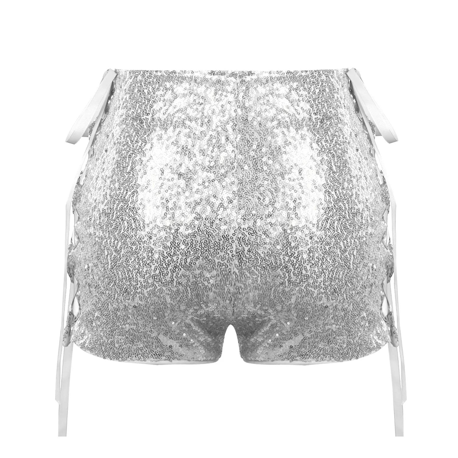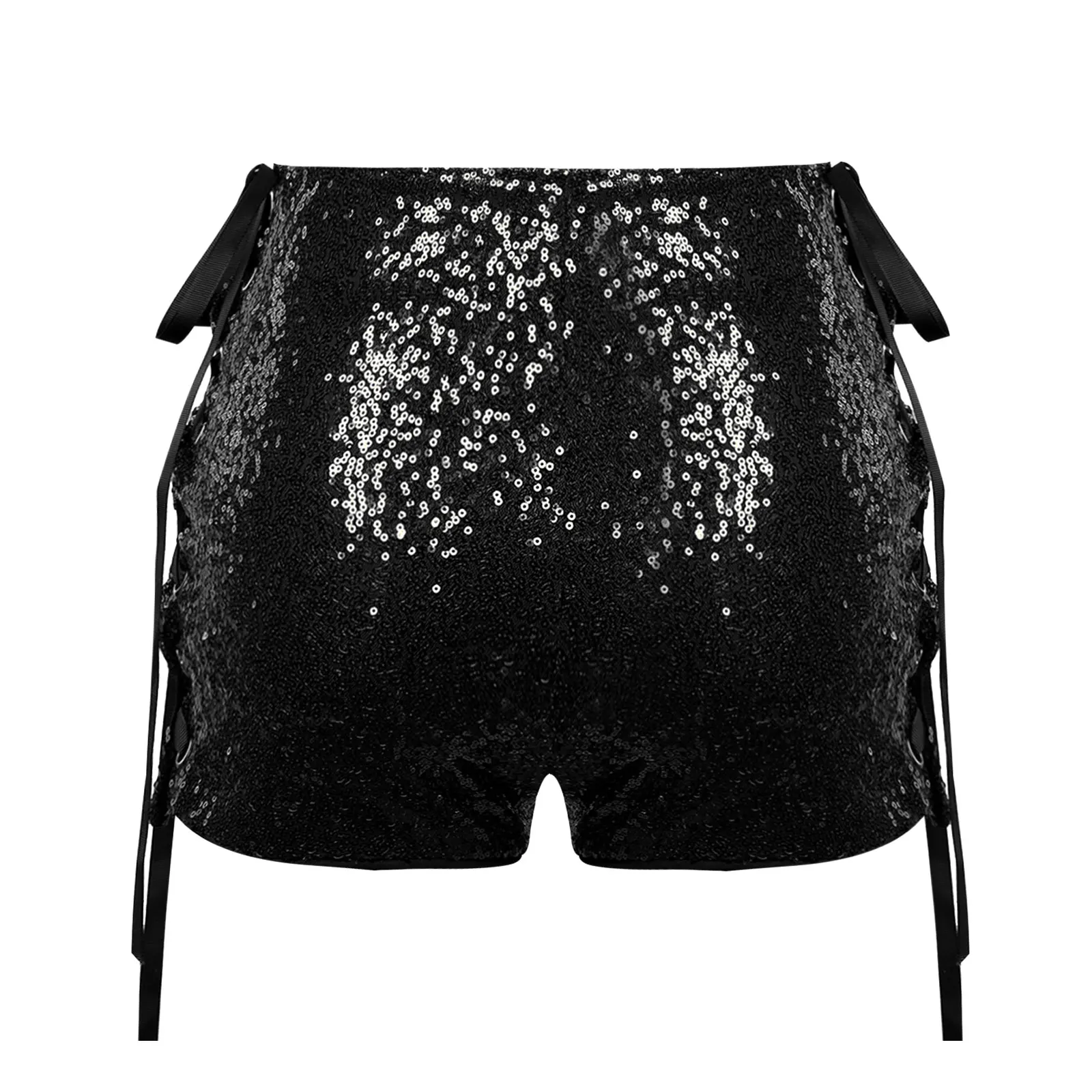 Шорты женские со шнуровкой по бокам, модные блестящие короткие пикантные Клубные Одежда с блестками для танцев, выступлений, вечевечерние, танцев