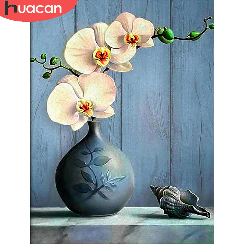 HUACAN полный дрель алмазов картина Орхидея Алмазная ваза-Мозаика из цветы вышивка крестом украшение ручной работы
