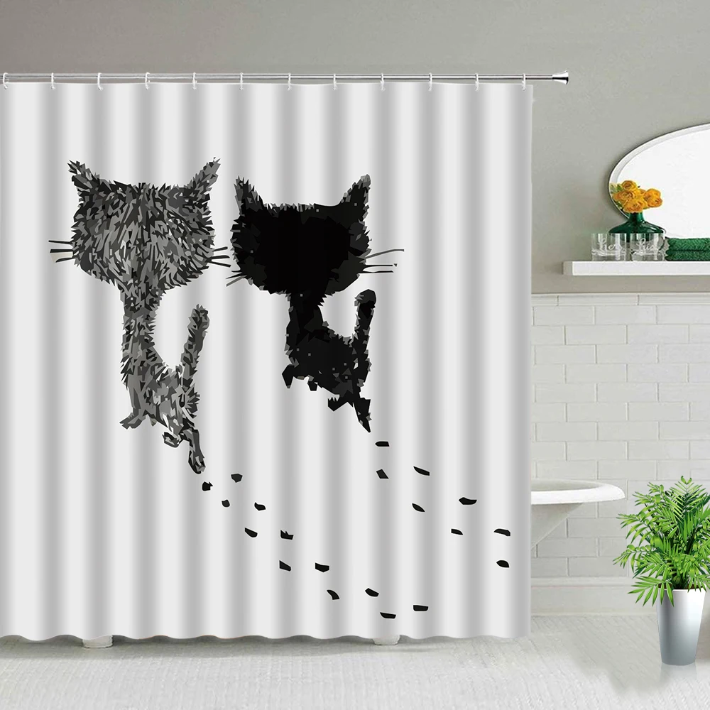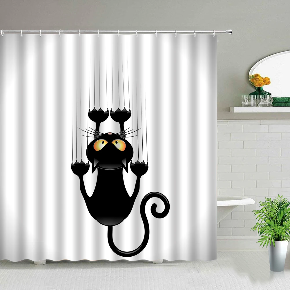 Занавеска для душа, из полиэстера, водостойкая, с принтом в виде кота