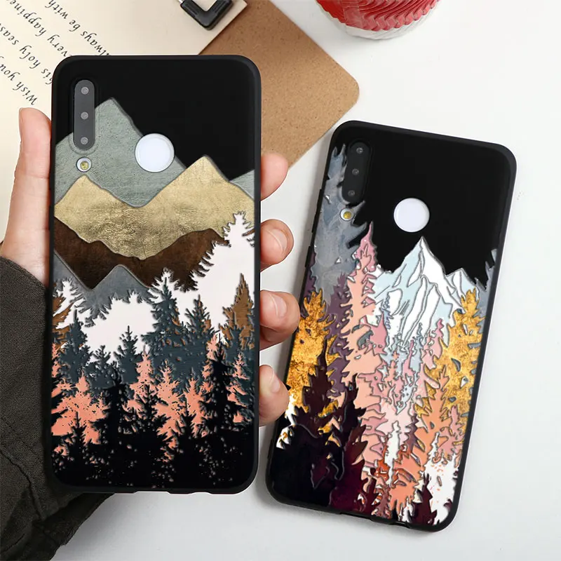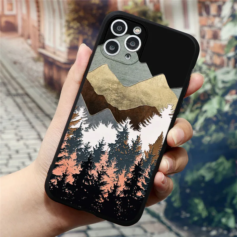 Мягкий чехол для телефона с 3D тиснением гор и деревом для iPhone 1...