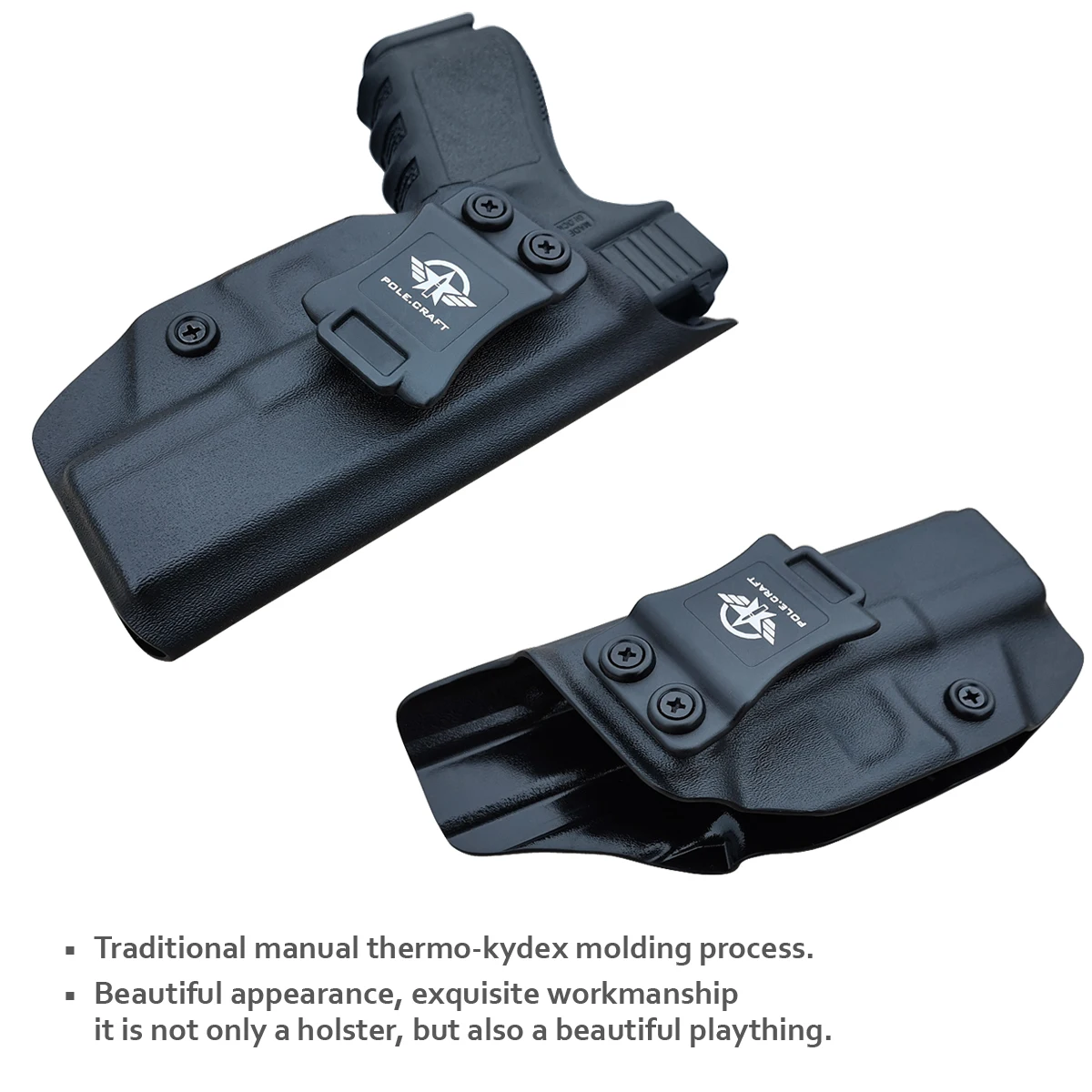 Pole.Craft for Glock Holster IWB изготовлен вручную из прочной 0,8 "Kydex. Он не только водонепроницаем, устойчив к поту, но и обладает высокой прочностью, высокой вязкостью, ударопрочностью, устойчивостью к истиранию и старению. Можно использовать в различных условиях. Так что вы всегда можете полагаться на него, чтобы спасти свою жизнь.