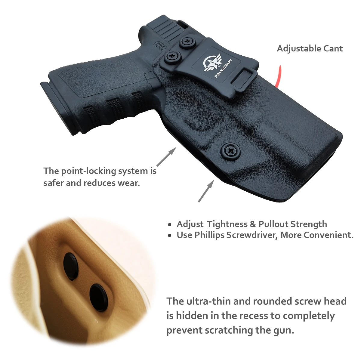 Носите с уверенностью: пожалуйста, не стесняйтесь использовать шест. Крафт Портативный Скрытая кобура для защиты для Glock 19 Кобура. Это Кобура Kydex IWB третьего поколения для Glock 19 19X 23 25 32 45 (Gen 1-5). Он не только высокоточный, но и прочный, его можно спрятать и переносить, поэтому вы можете защитить себя в любое время и в любом месте.