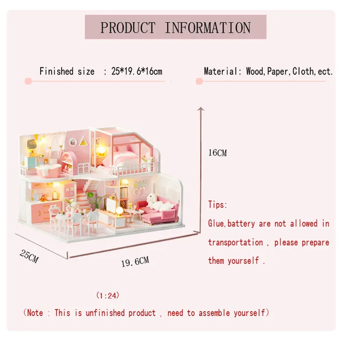 3. Добро пожаловать, чтобы отправить нам сообщение, если у вас есть какие-либо вопросы о продукте.4. Поставка услуг прямой поставки, производство кукольного домика, посылка в оригинальной коробке, с инструментами. Клей. Руководство на английском языке