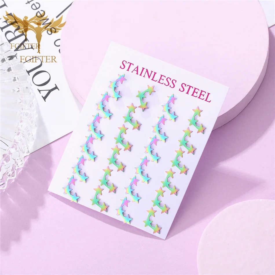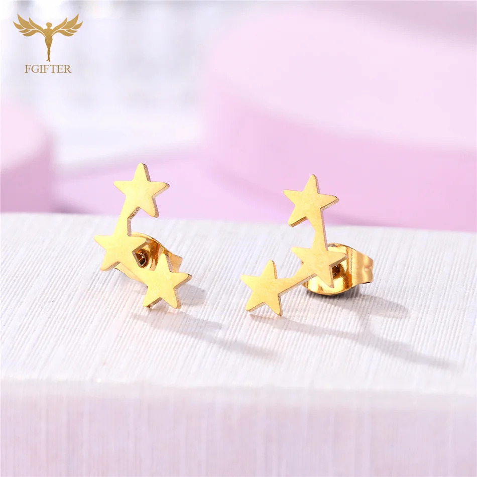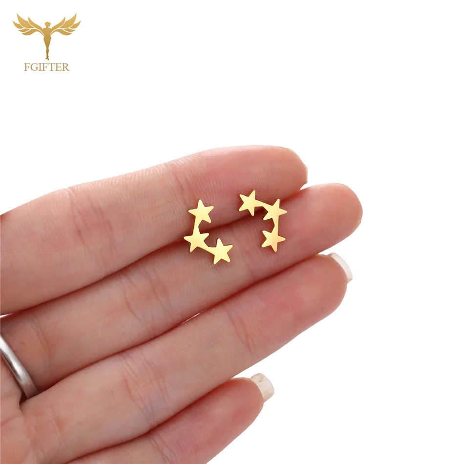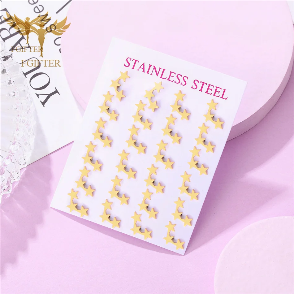 Аксессуары для ушей женские, из нержавеющей стали, золотистые, серьги-гвоздики "Звёзды", 12 пар