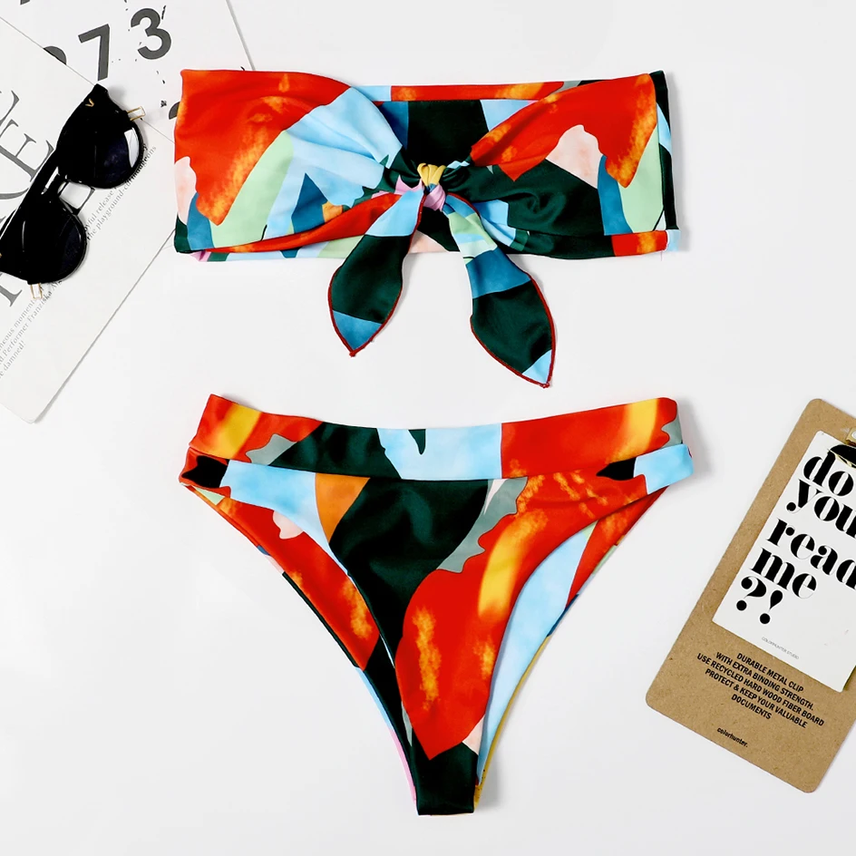 Соблазнительные бикини с высокой талией 2022, купальник, женский купальник, бикини с бантом и высокими штанинами, комплект для плавания, купальный костюм, женские купальники