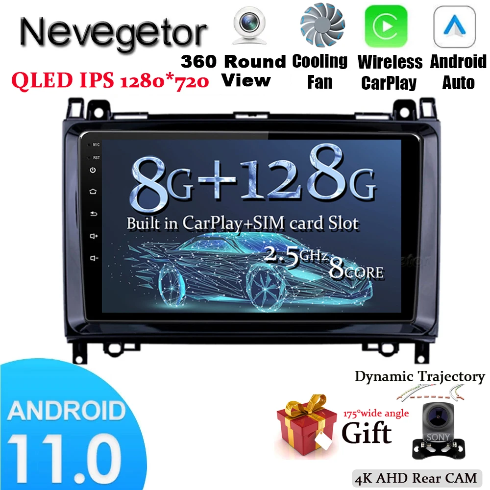 Автомагнитола Viano Vito, мультимедийная магнитола на Android 11, с 9 "экраном, с GPS, 4 Гб, для Mercedes-Benz B200 Sprinter W906 W639, AB Class W169 W245, типоразмер 2 Din