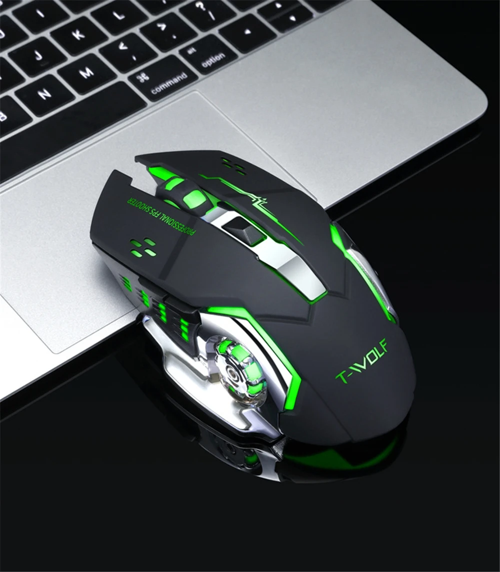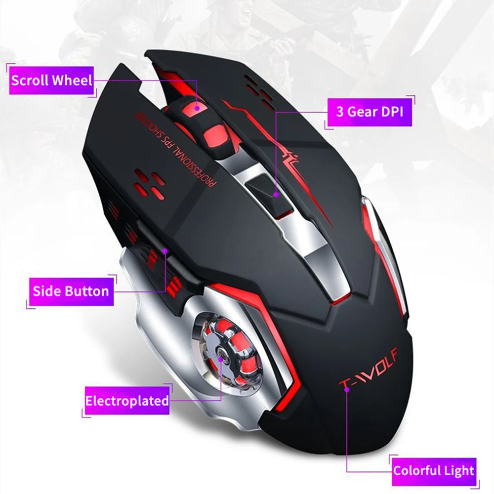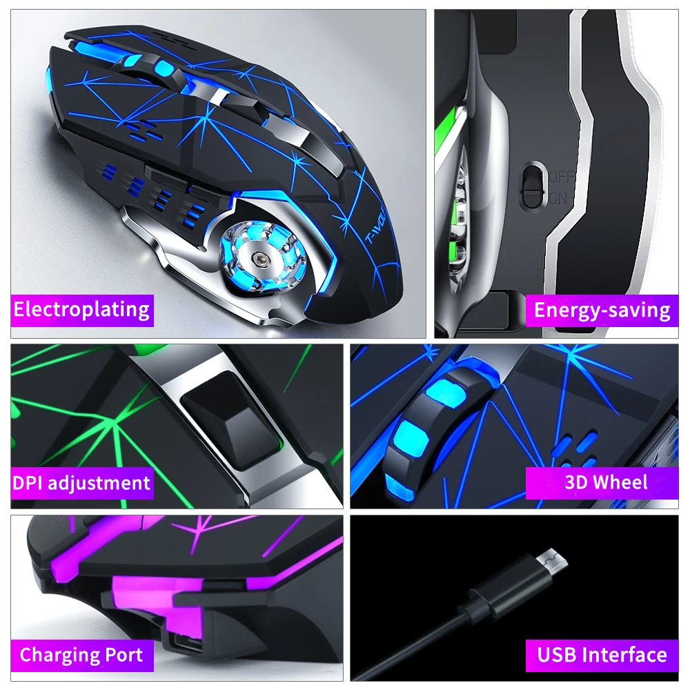 Беспроводная игровая мышь 2400 DPI, перезаряжаемая Регулируемая дышащая мышь с 7-цветной подсветкой для ПК и ноутбука