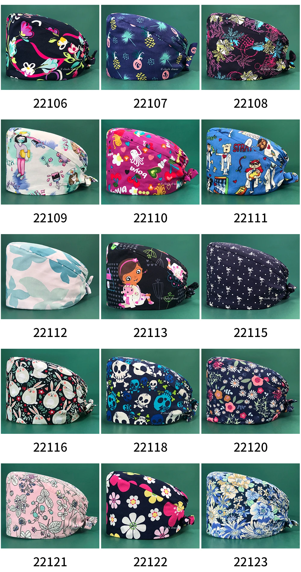 Впитывающая пот Модная хлопковая шапка с принтом для медсестер шапк...