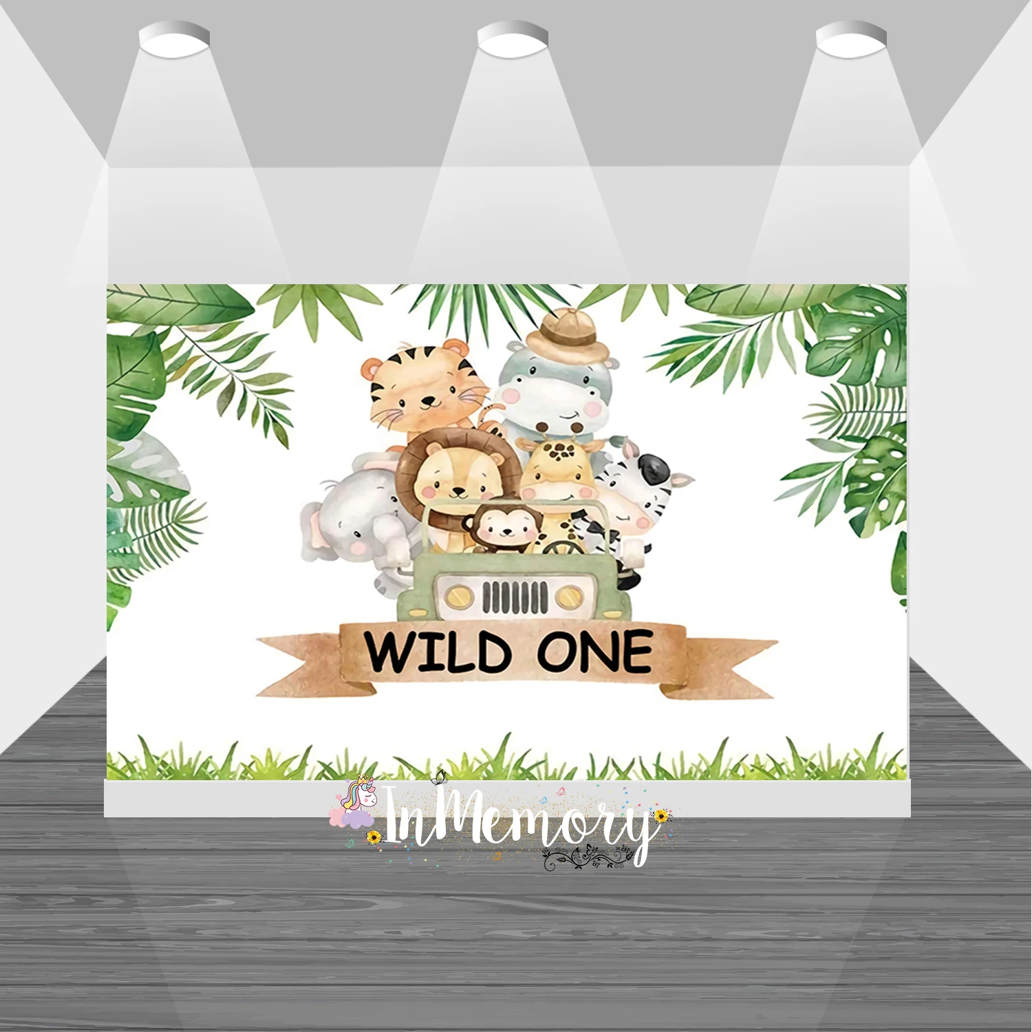 Индивидуальный фон с именем животных джунглей сафари Дети День Рожд...