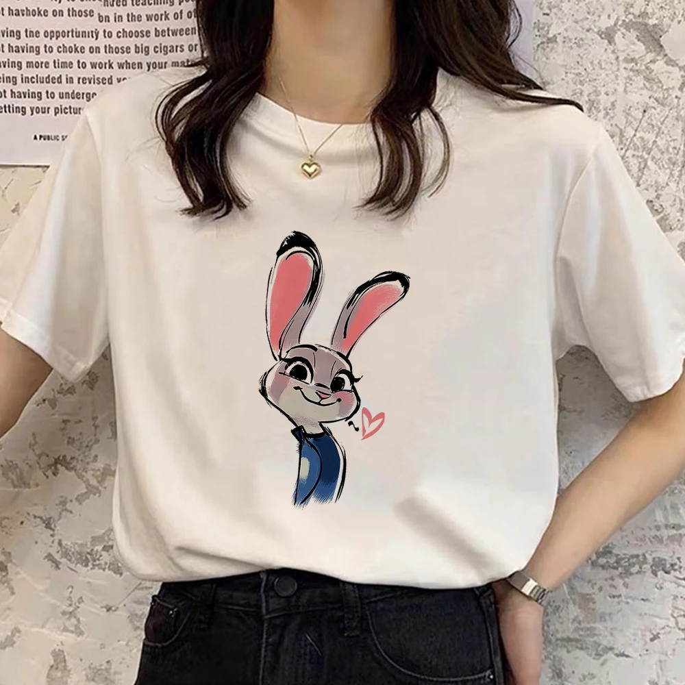 Футболка женская с коротким рукавом, круглым вырезом и принтом кролика
