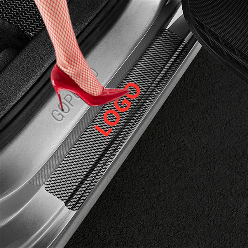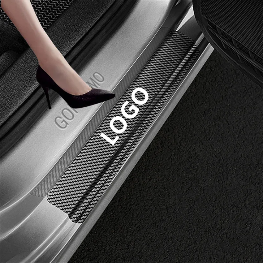 Новинка 4 шт. протектор порога из углеродного волокна кожаные винил...