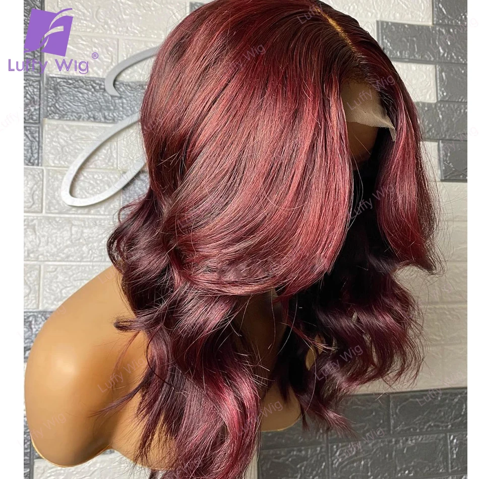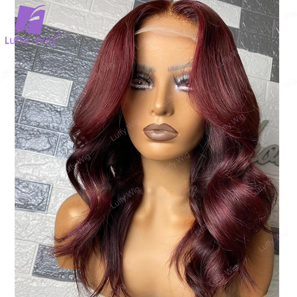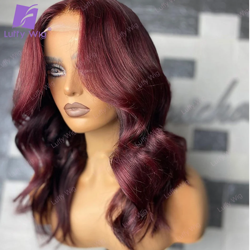 Парики 99J из человеческих волос бордового цвета, плотность 200, бразильские человеческие волосы Remy 5x5, парики из искусственной кожи на шелковой основе, искусственная кожа головы, свободные волнистые парики Luffywig