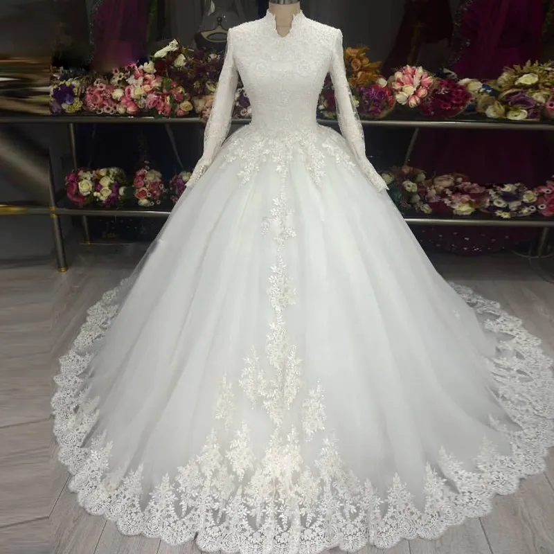 Кружевное мусульманское свадебное платье с длинным рукавом для невесты 2021, Марокканское бальное платье-кафтан с аппликацией, свадебное платье невесты