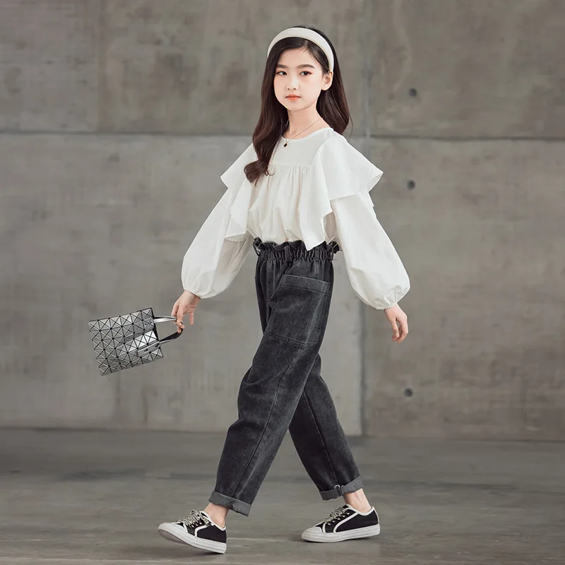 Джинсы с широкими штанинами для девочек от 10 до 12 лет, осенние св...