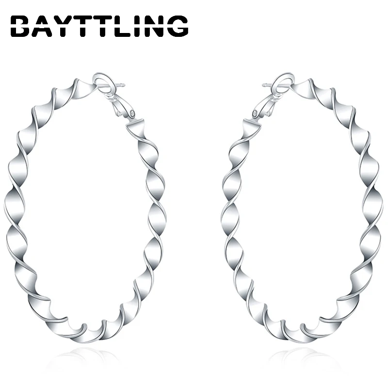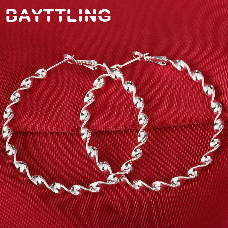 BAYTTLING 2121 новые серебряные цветные 45 мм гофрированные скрученные большие серьги-кольца для женщин модные Гламурные свадебные Ювелирные изделия Подарки