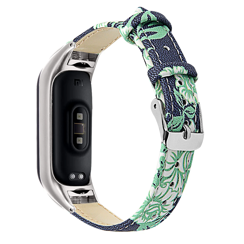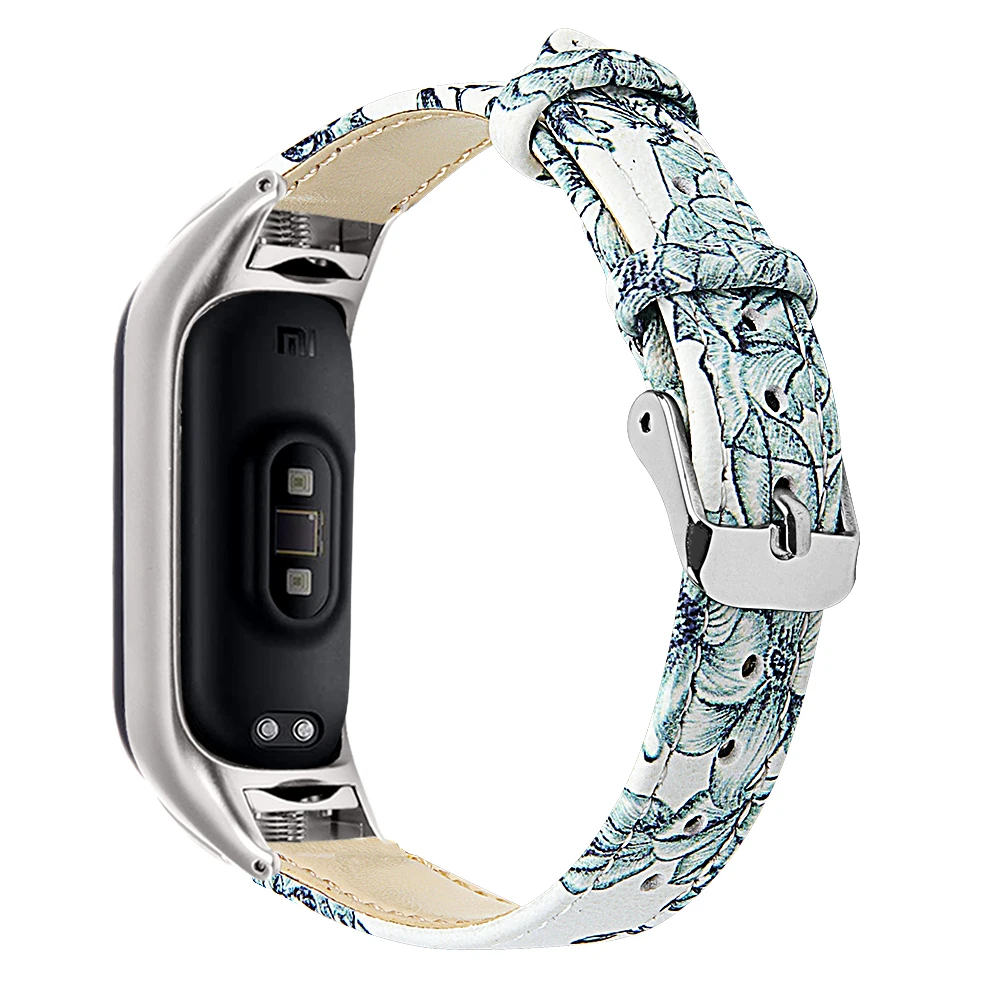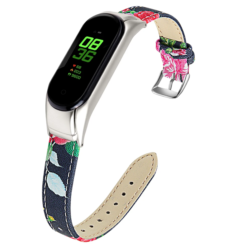 Ремешок кожаный для Xiaomi Mi Band 6 5 4 3, сменный Браслет с принтом для mi Band 6 543, аксессуары для часов, ремень
