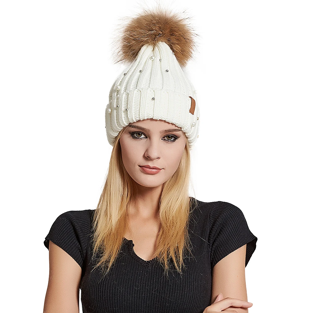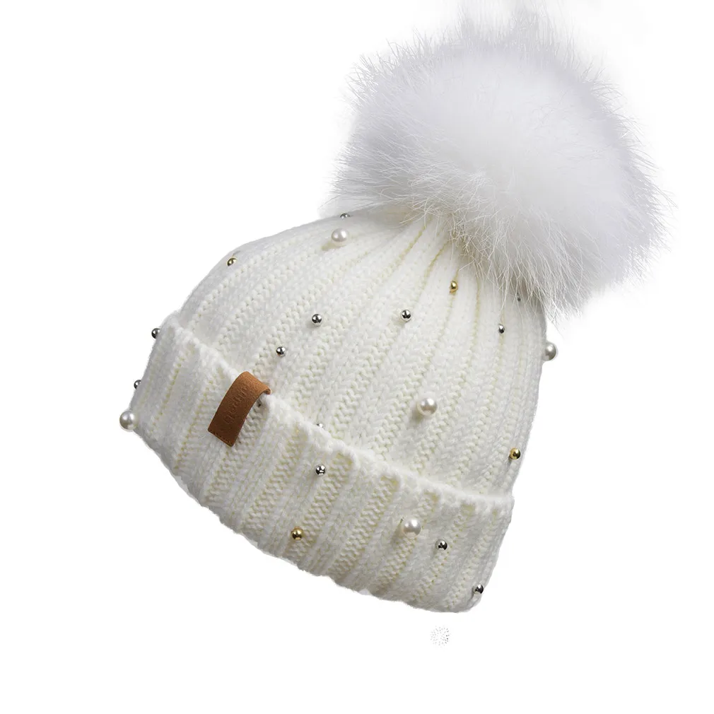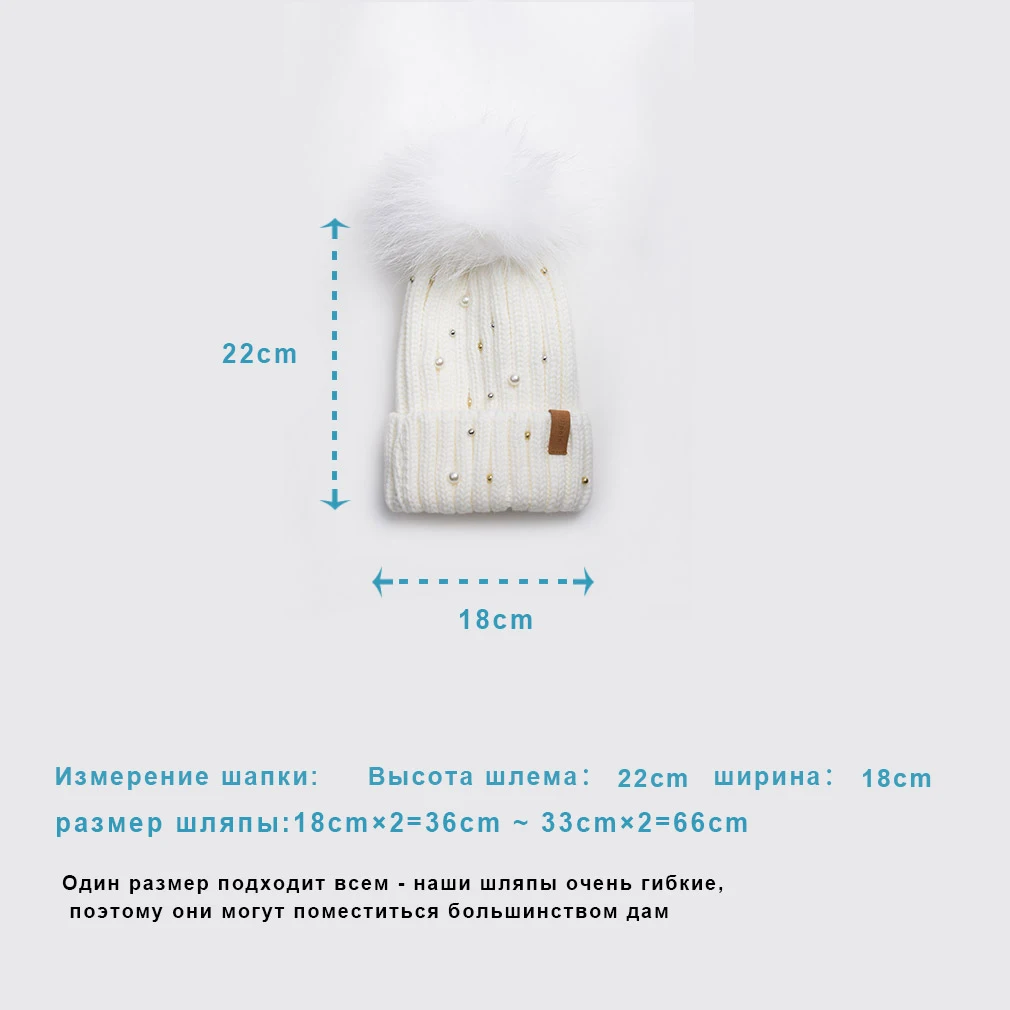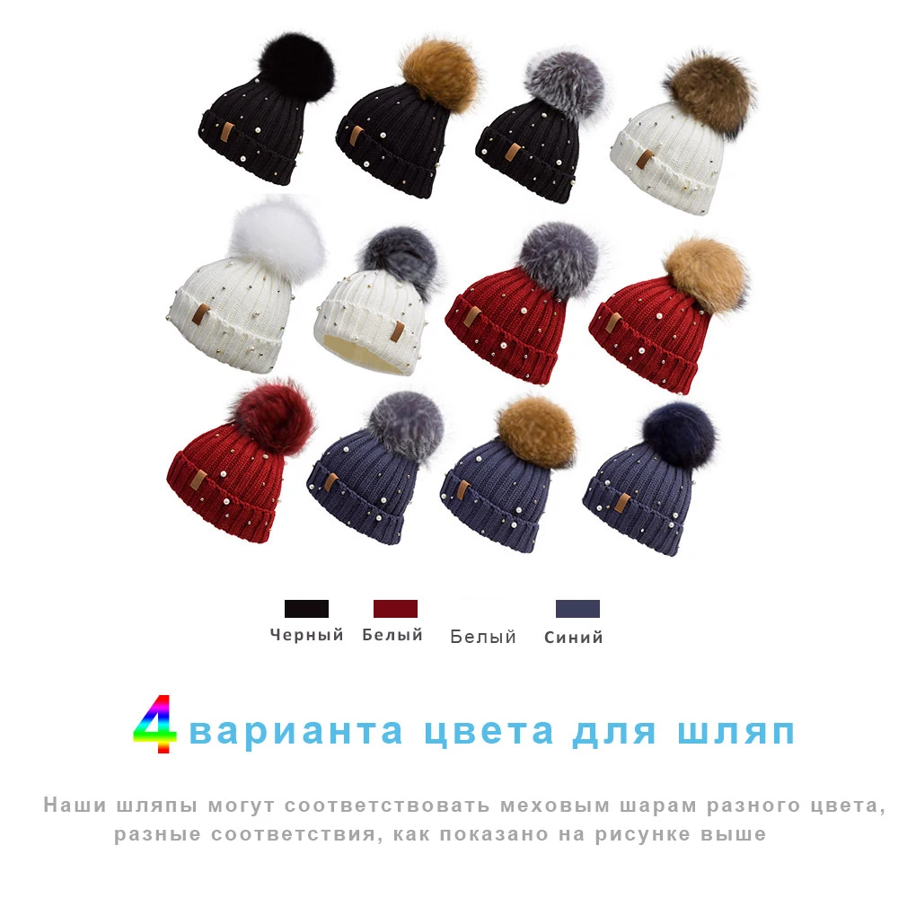 Женская вязаная шапка с меховым помпоном, зимняя женская шапка, Лыжная шапка