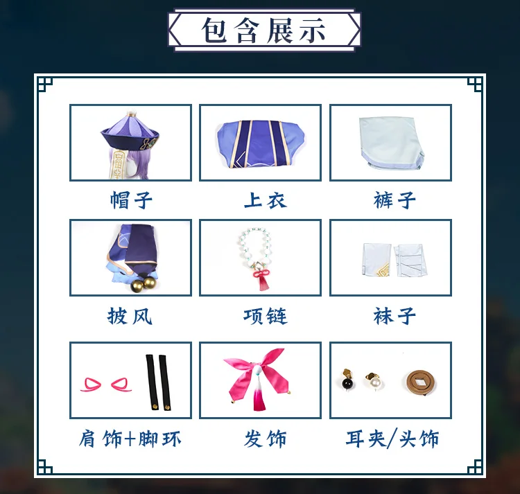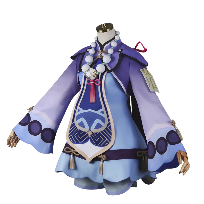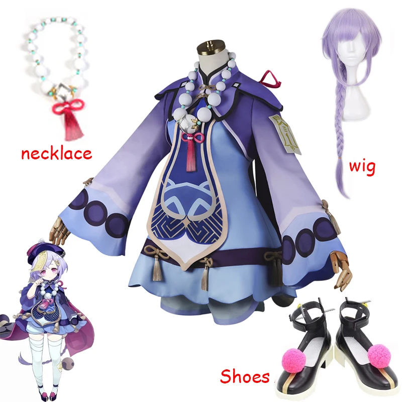 Костюм для косплея Genshin Impact Qiqi, женский костюм для косплея, фиолетовый костюм зомби, платье на Хэллоуин, ожерелье, шляпа, полный комплект