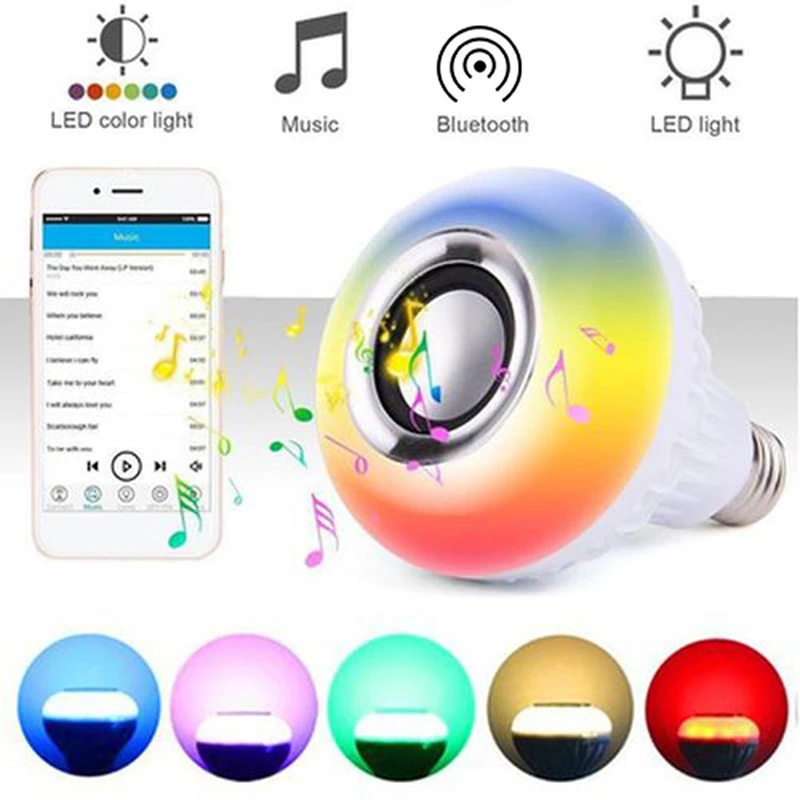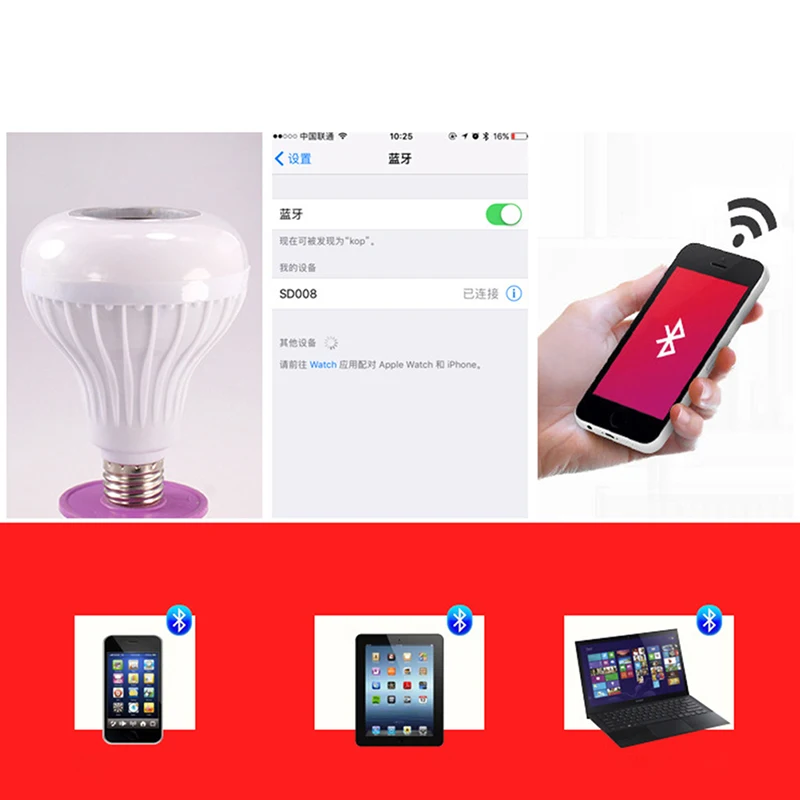 E27 светодиодный лампы светильник Беспроводной Bluetooth аудио Динамик работы в режиме воспроизведения музыки с регулируемой яркостью лампы
