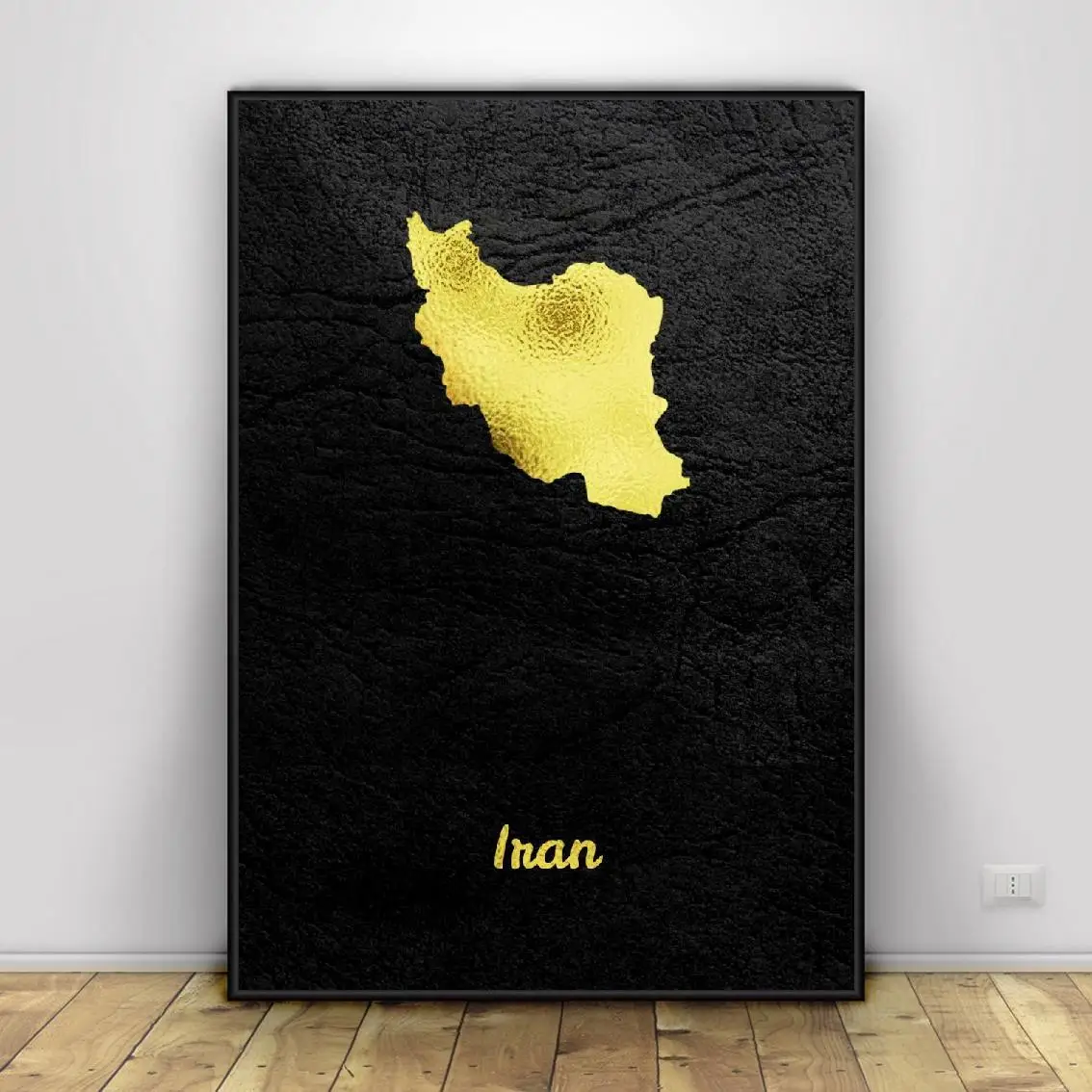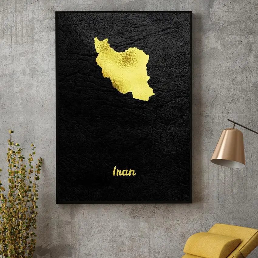 Золотая карта иранской карты, холст, Настенная картина, печать, дом...