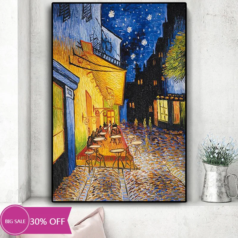 Знаменитая кафе терраса ночью Картина на холсте репродукции на плакатах и принтах Настенная картина для декора комнаты