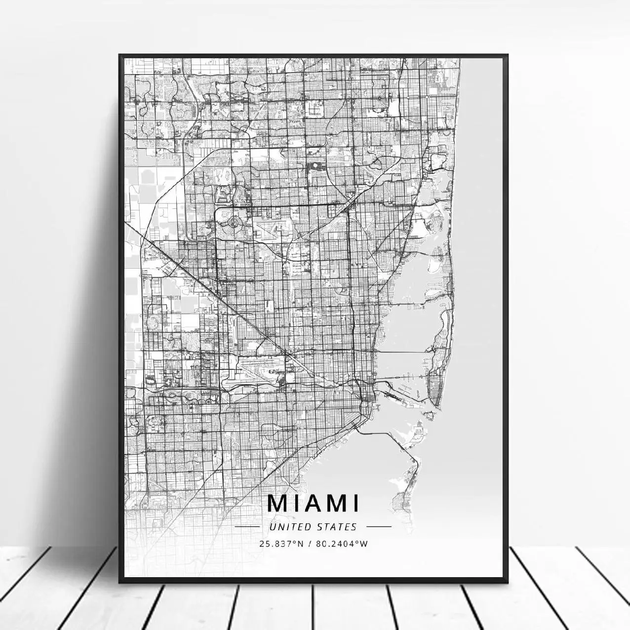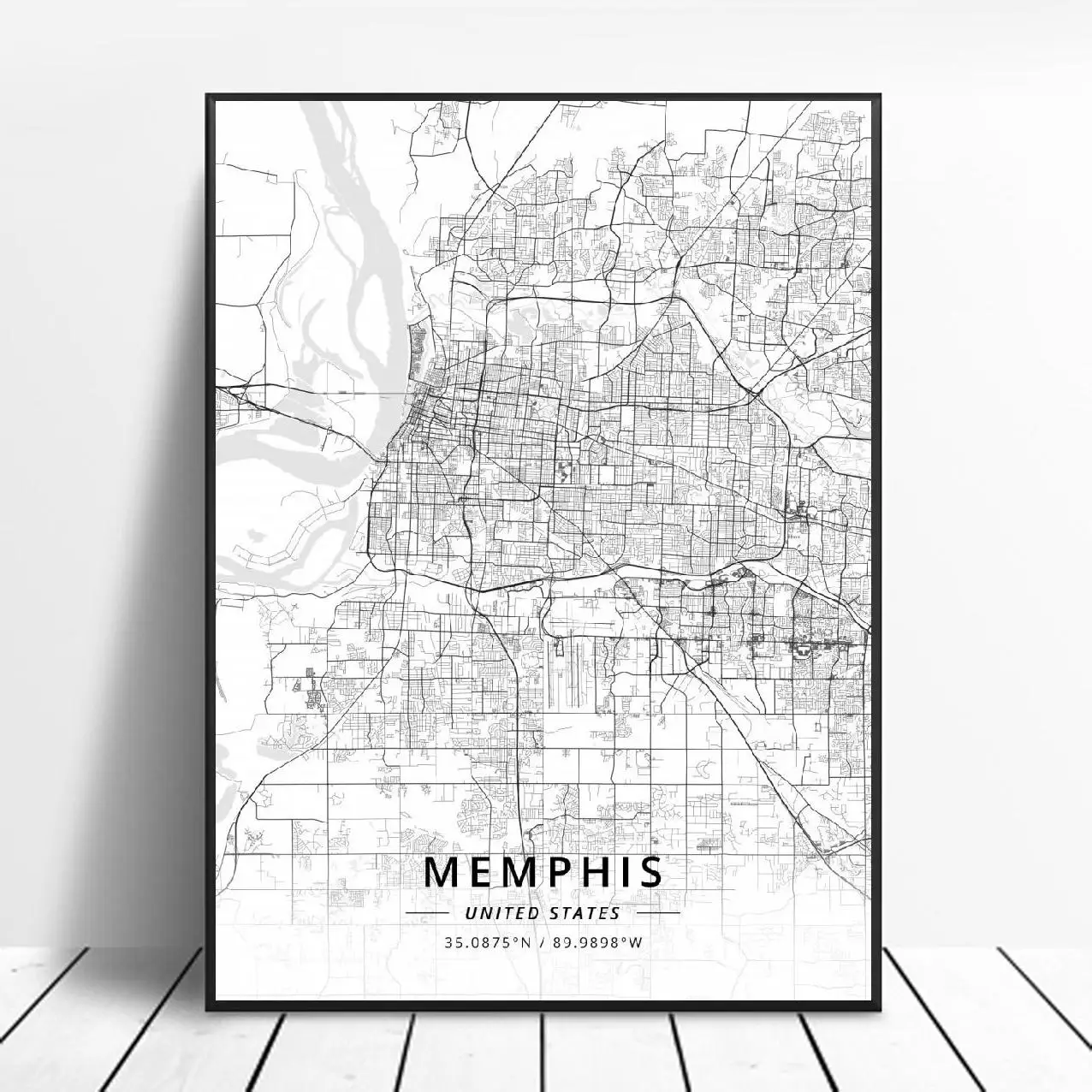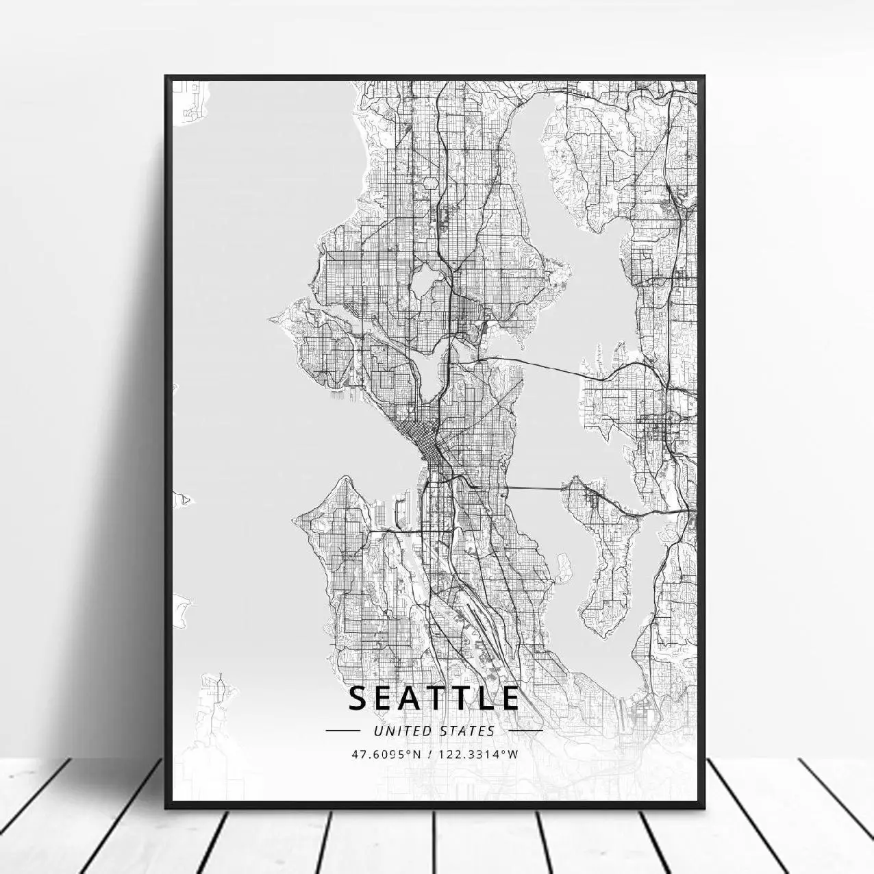 Черно-белый холщовый постер с принтом карты города стальбум, Соврем...