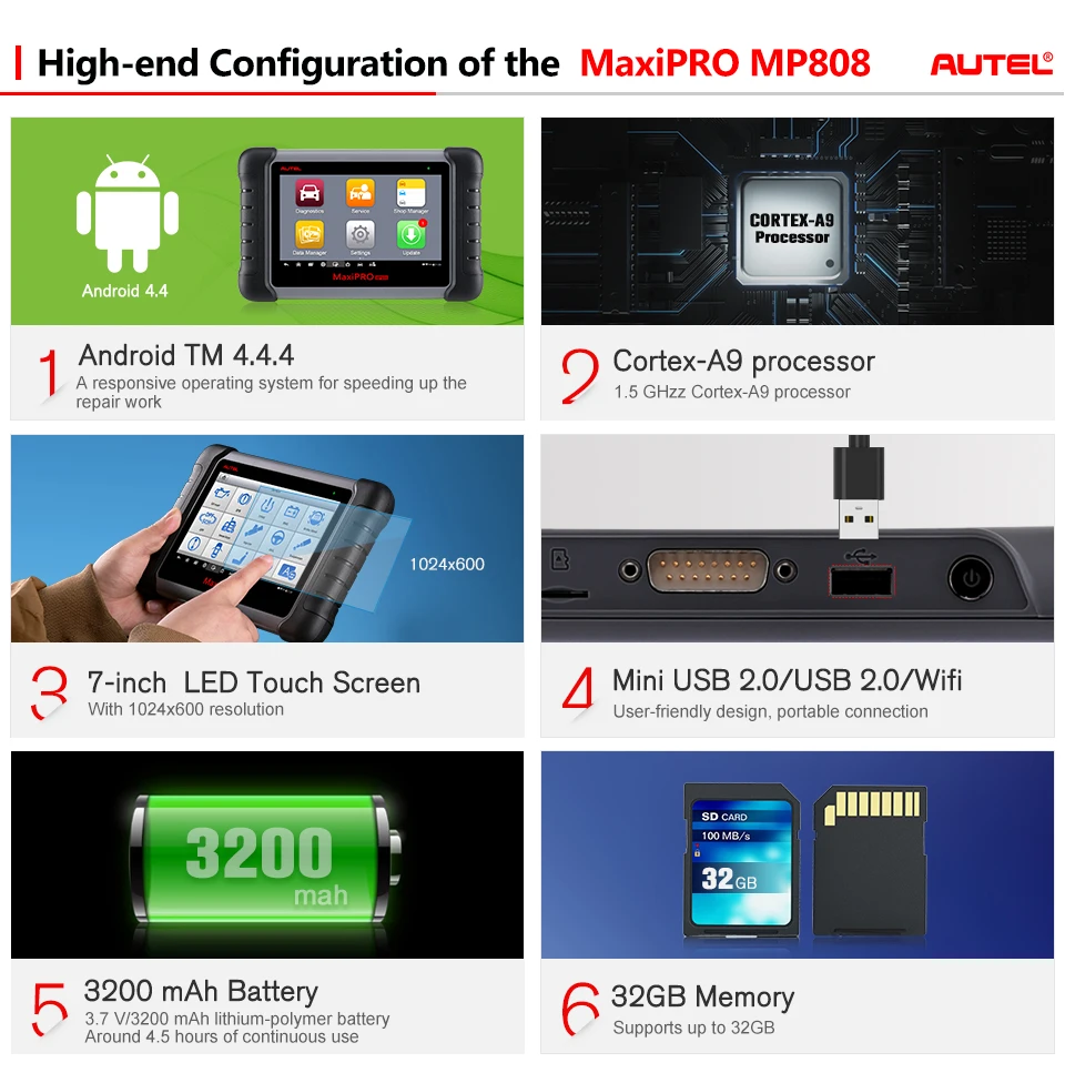 MP808-это профессиональный инструмент для автосканирования со скоростью и производительностью электростанции, который предоставляет богатство диагностических функций и функций, включая диагностику на уровне OE, двунаправленное управление, кодирование ключей, специальные услуги и многое другое. Этот диагностический инструмент за считанные секунды и оснащен большим 7-дюймовым дисплеем, что позволит вам быстро перейти к работе. Он предоставляет отличное решение для устранения неполадок транспортных средств как механикам, так и любителям самостоятельной сборки.