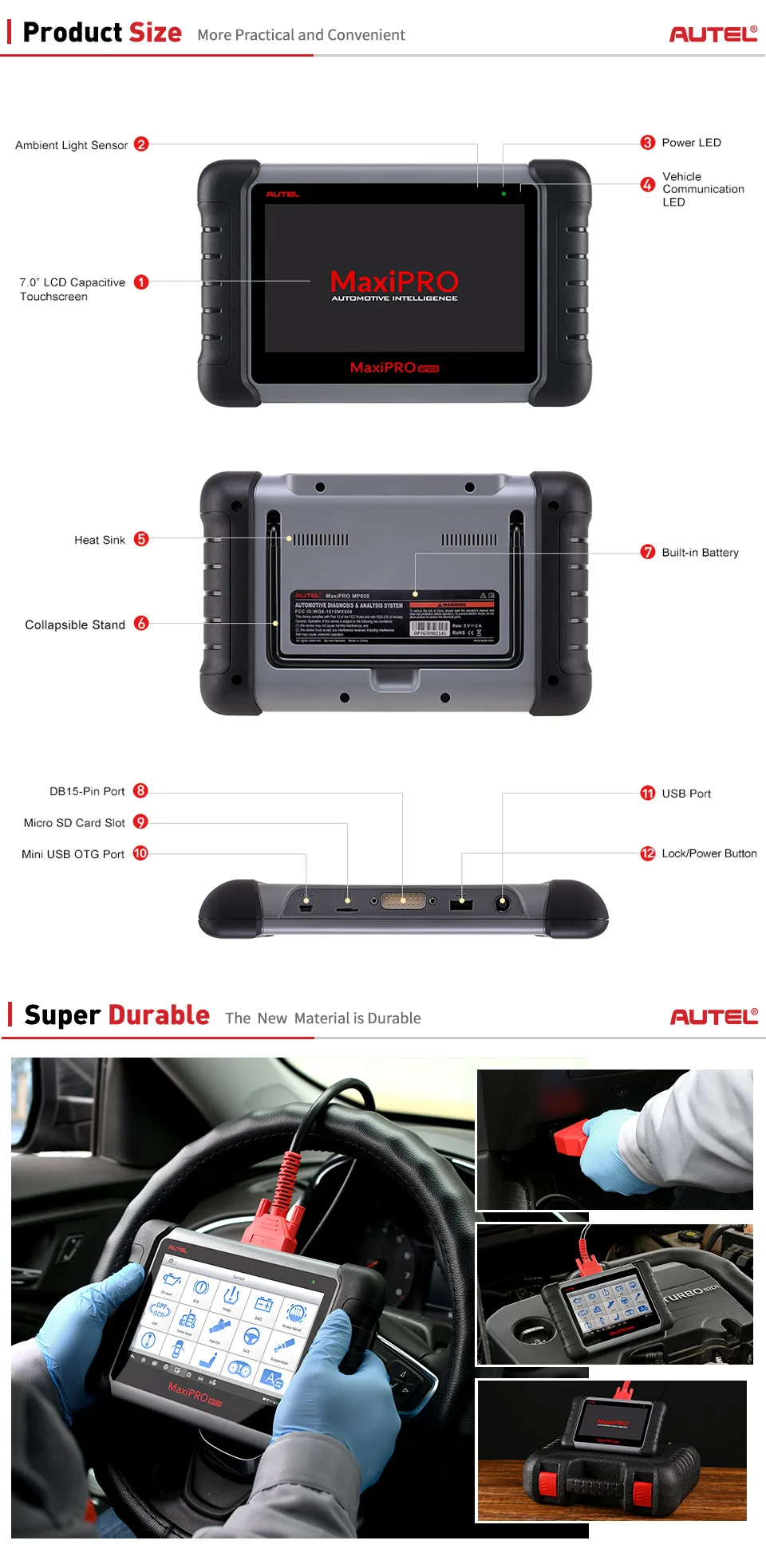 Автомобильный сканер Autel MaxiPRO MP808, диагностические инструменты для всех систем, Автомобильный сканер TPMS для авто, АБС-подушки безопасности, SAS, масло, DPF, EPB
