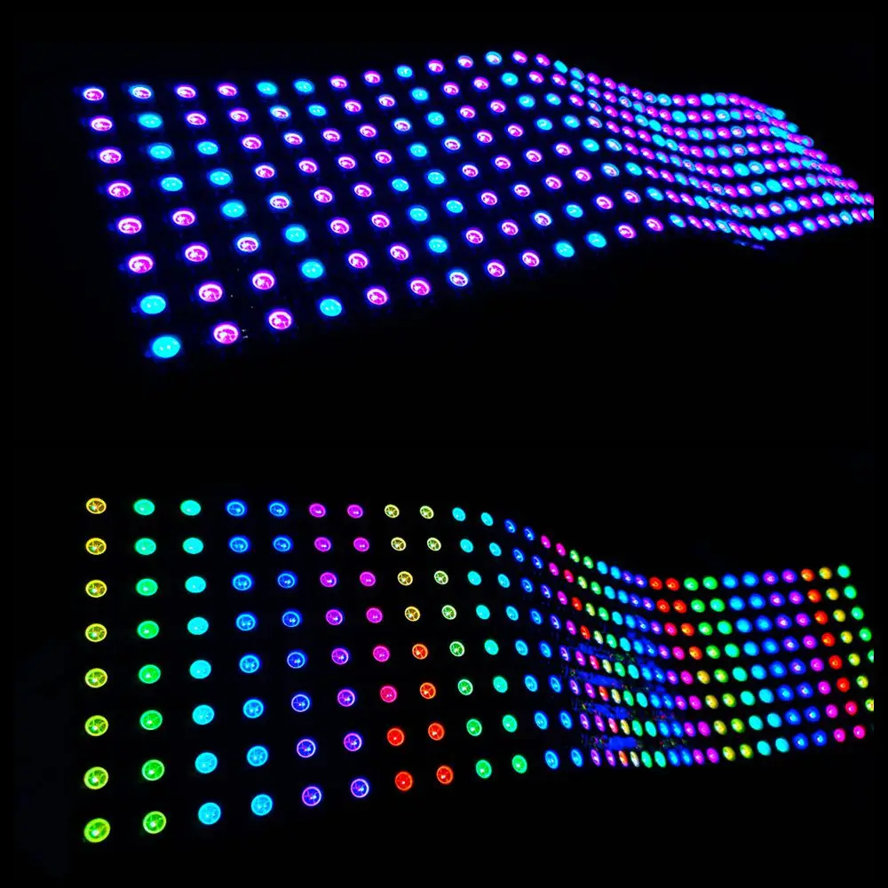 С помощью программируемого контроллера вы можете программировать каждый светодиод, который вам нравится. Каждый светодиод имеет свой собственный IC чип. Один IC контроллер один светодиод. Чип buil in led.