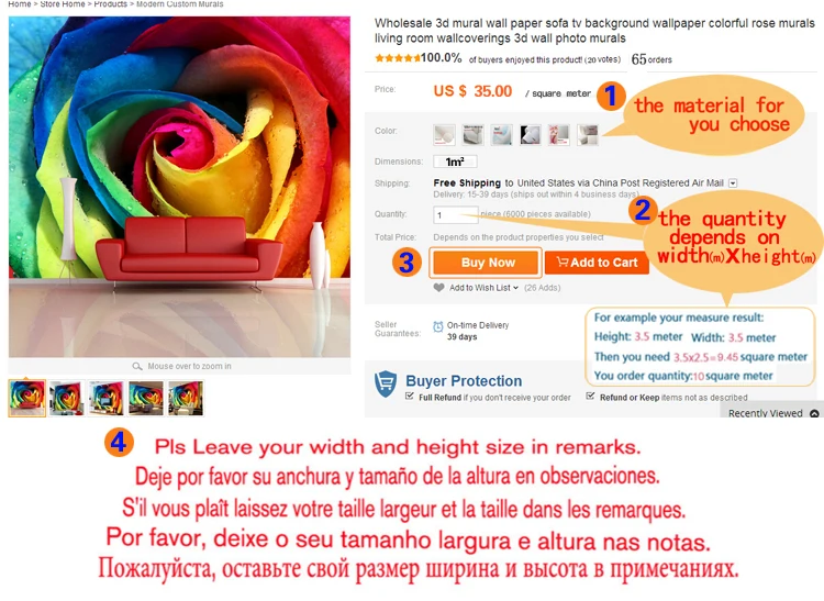 (4)Если вы покупаете 1 количество, мы отправим заказ по размеру: 50 см x 110 см; ЕслиВы покупаете менее 5 квадратных метров (количество), мы отправляем заказ только Почта Китая зарегистрированной авиапочтой, пожалуйста, проверьте и подтвердите.