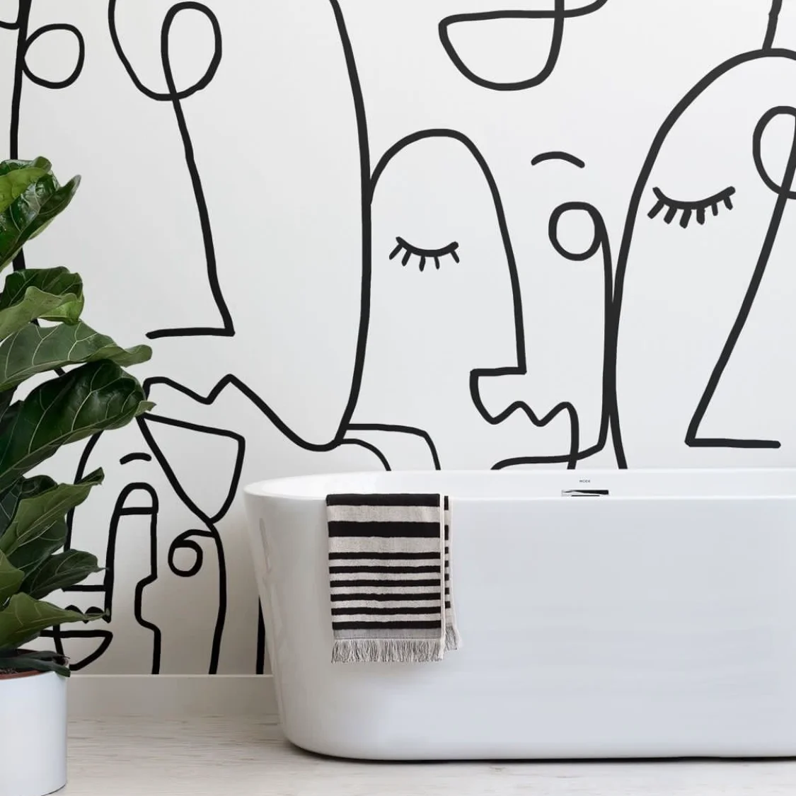 Самоклеящиеся обои Bacaz для рисования больших линий лица, Настенные обои для ванной, Canbinet, фон, съемный портрет, 3D обои