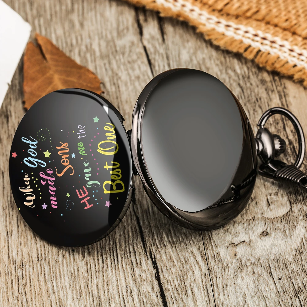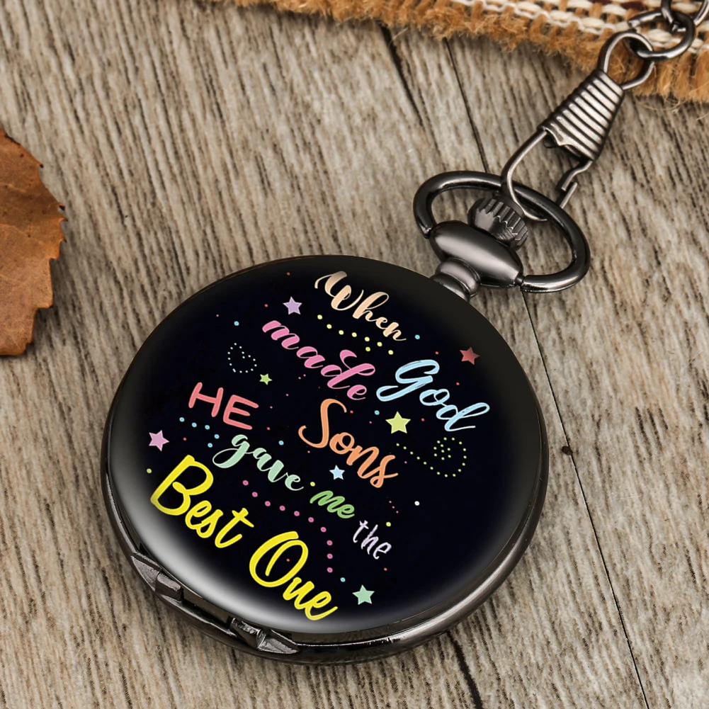Красивые Цвет текст узор практические подарочные карманные часы Для мужчин кварцевые часы с белым циферблатом, цепь кулон лучший подарок на день рождения для сына