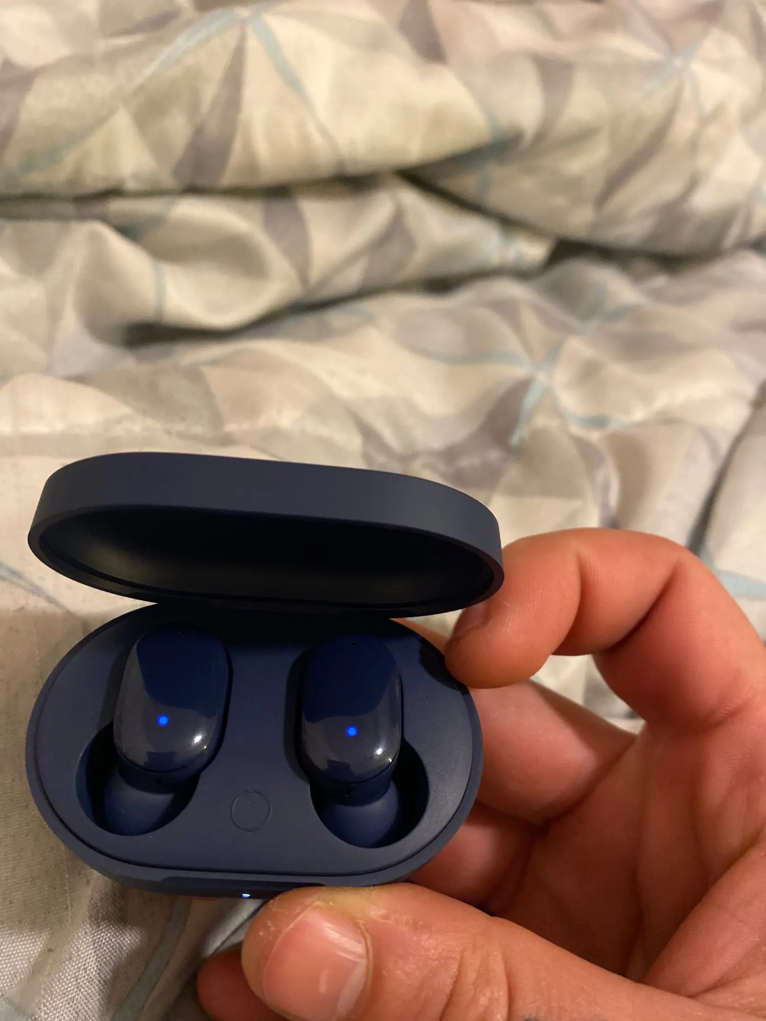 Получили наушники, сын остался доволен. Синий цвет очень интересно смотрится. И чехол, и сам бокс с наушниками достаточно качественны. Покупкой довольны, спасибо.
