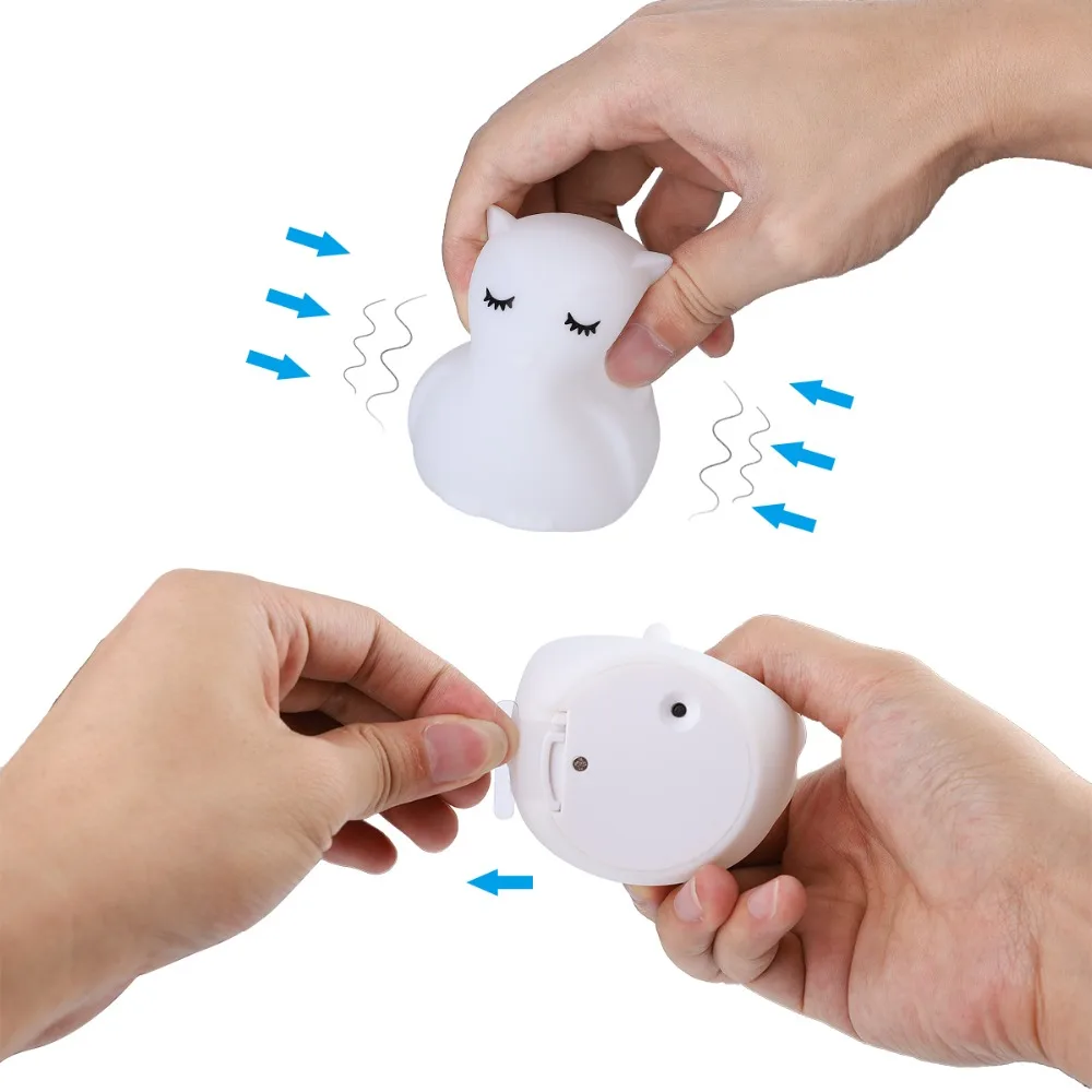 Мини-медведь, бегемот, Сова, Пингвин, кролик, светодиодный ночсветильник, 9 цветов, мультяшный силиконовый, для спальни, прикроватная лампа для детей, Детский подарок