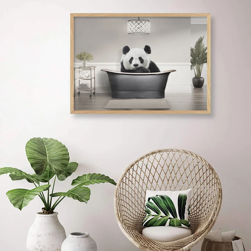Картина с животными панда, корова, медведь в ванной, Детская настенная живопись, холст, постеры и принты, фотографии, ванная комната, туалет, декор для детской комнаты