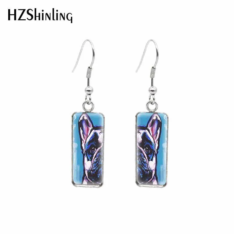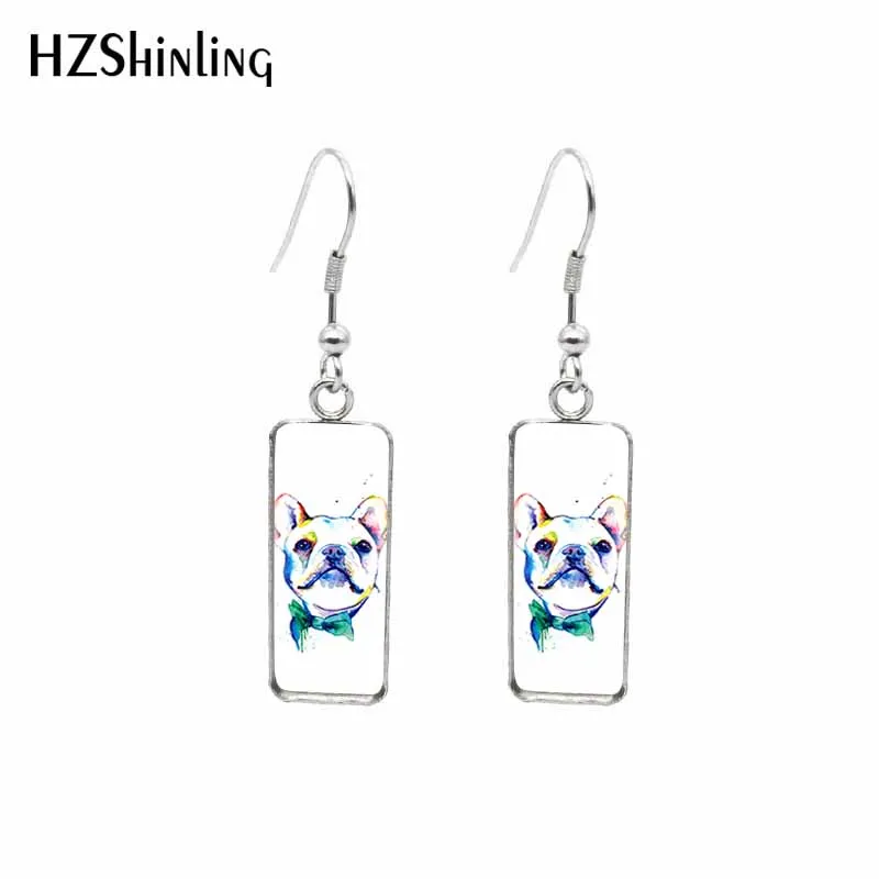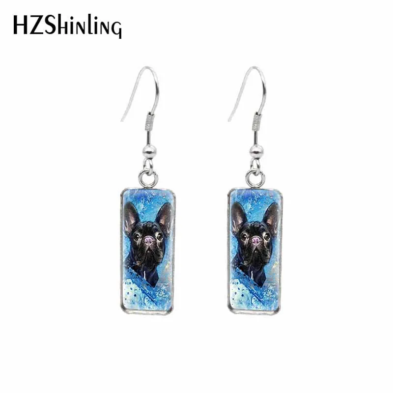 Серьги-Крючки в виде лягушки, прямоугольные, стеклянные, с кабошоно...