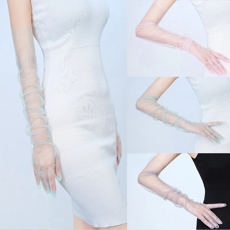 Женские прозрачные тюлевые перчатки 70 см, ультратонкие перчатки, д...