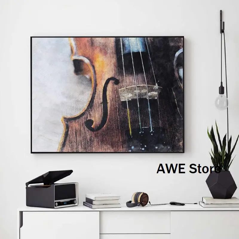 Постер на холсте с изображением музыкальных инструментов и виолончели