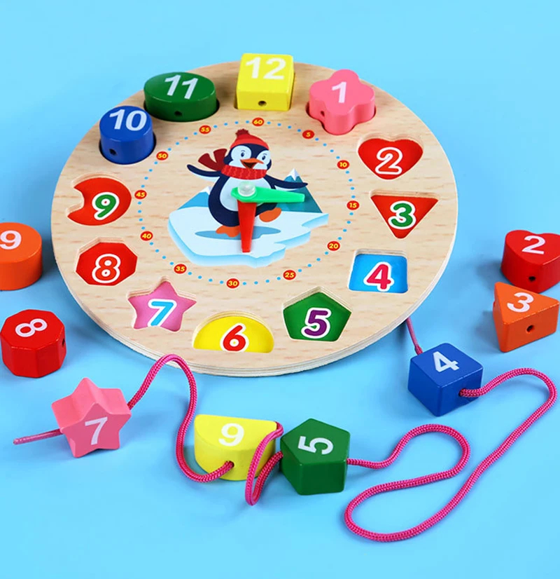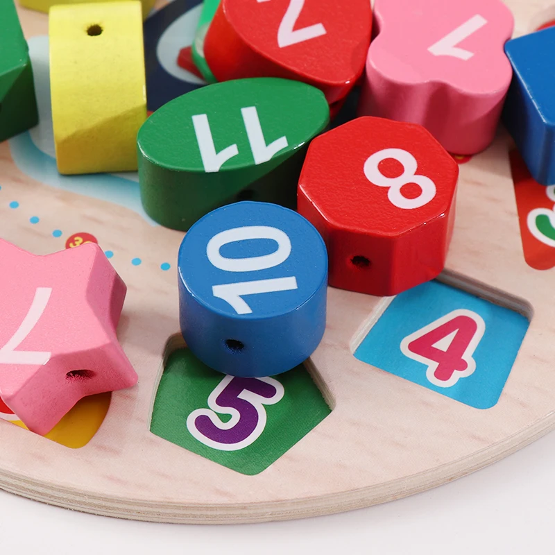 Монтессори деревянная головоломка для детей Часы игрушки Образование бисера Форма Цвет познания обучающая игрушка для детей дошкольного обучения