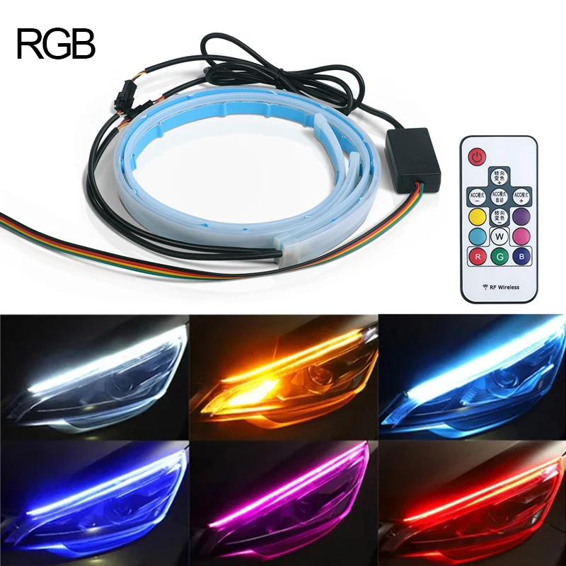 2 шт. DRL автомобильный дневной ходовой светильник светодиодный гибкая Водонепроницаемая полоса Авто головной светильник s указатель поворота декоративная лампа RGB APP Control 12V