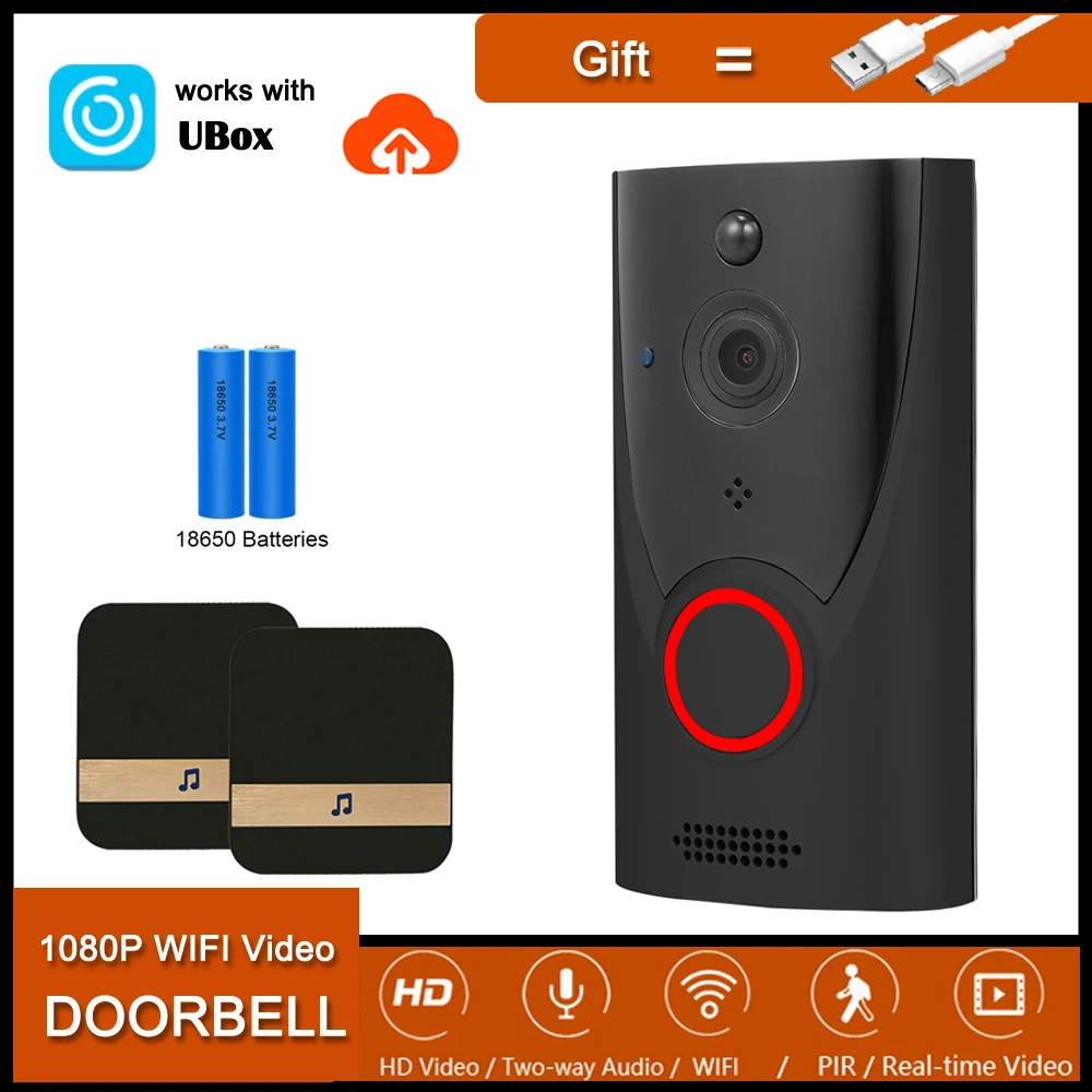 Камера видеозвонка Ubox HD 1080P с пассивным ИК датчиком движения, ночным видением и облачным хранилищем