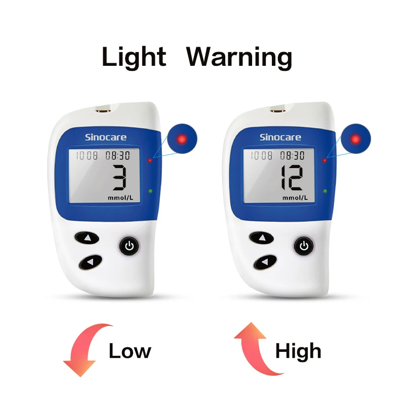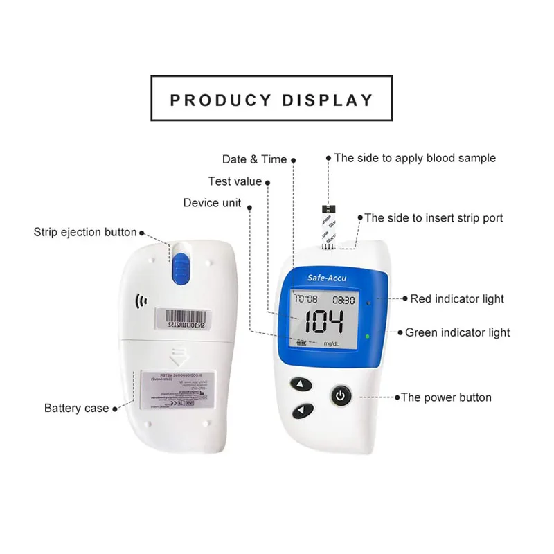 1. Есть 2 дополнительных устройства-mmol/L & mg/dL, пожалуйста, выберите его в соответствии со стандартом в вашей стране. 2. Посылка не входит в комплект поставки из-за ограничений на авиацию. 3, пожалуйста, не проводите тест-полоски в бутылках в течение 3 месяцев после открытия.